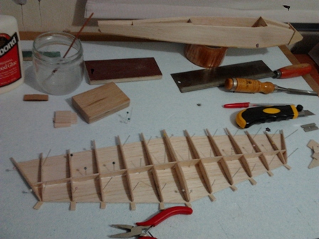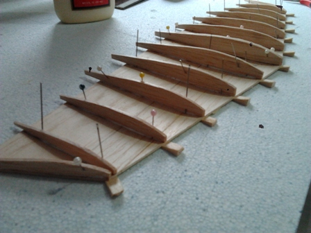 yoyo escribió:Hoy hemos dedicado la faena en el acople de las placas entre costillas a lo largo del ala, con veta en vertical y hemos utilizado en balsa de 2,5mm.