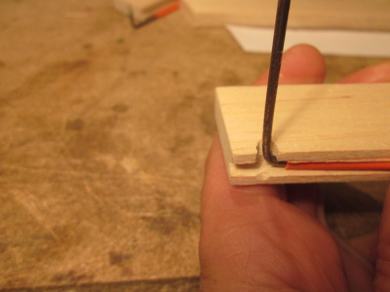 Como puedes ver la cuerda de piano de 2mm vá embutida en unas "camisas" que son pegadas a la semifuga lo cual permite el movimiento para controlar los alerones. De ahí que Juan indica poner un poco de vaselina a la cuerda de piano para evitar que se pegue.