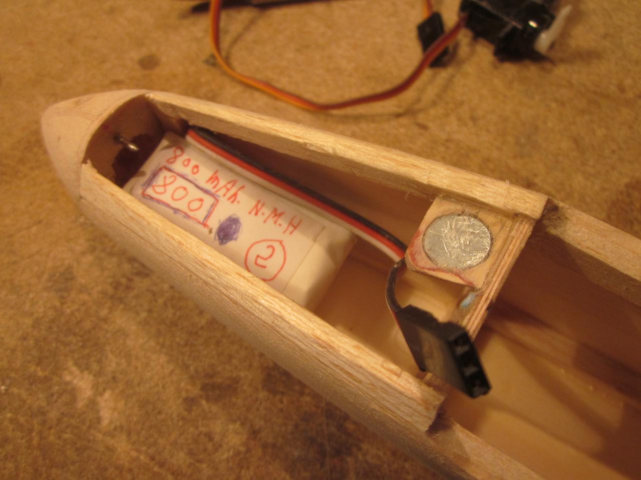 Y ahora nos ponemos a instalar el servo de profundidad en el fuselaje, en el plano indica que se le ponga en su parte trasera, :roll: pero una vez comprobado ( este es mi caso ) a mi no me lo permite , :x pues para su movimiento le estorban los cuernos alerones , :x a si que he optado por ponerlo de esta forma en su parte mas delantera , dejando algo de espacio para poder acceder a la cuaderna 2, por otro lado en mi caso creo que es lo mas acertado, pues le he hecho unas comprobaciones de peso, y acepta perfectamente el servo en el lugar elegido, :P