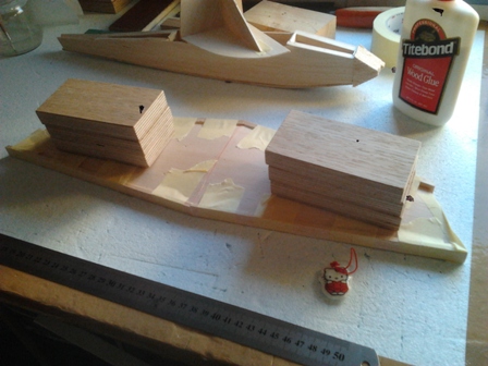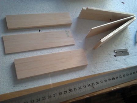 Tambien cortamos los listones para pegarlos en lo que va a ser el borde de fuga y ataque del ala ,cojemos , eso si , buscando esos retales y aprovechando los gruesos vamos pegando , para lo que va ha hacer los bordes marginales , tambien da tiempo antes de partir de viaje en sacar las tiras que nos falta por poner en el fuse del asiento del ala para su refuerzo del mismo. Y eso fue todo en el dia de ayer mañana si da lugar le daremos otro tironcito de orejas :wink: :wink: