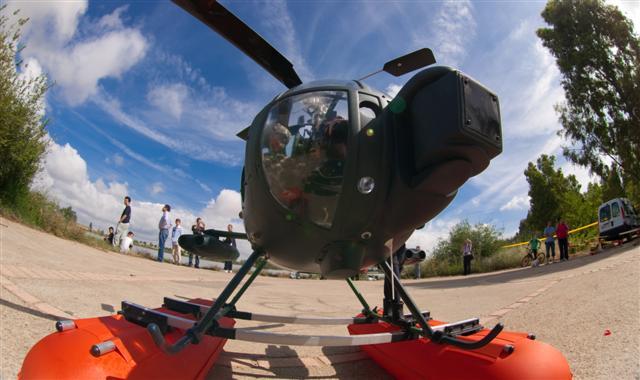 Y aqui el md 500 con sus flotadores listo para ir al agua