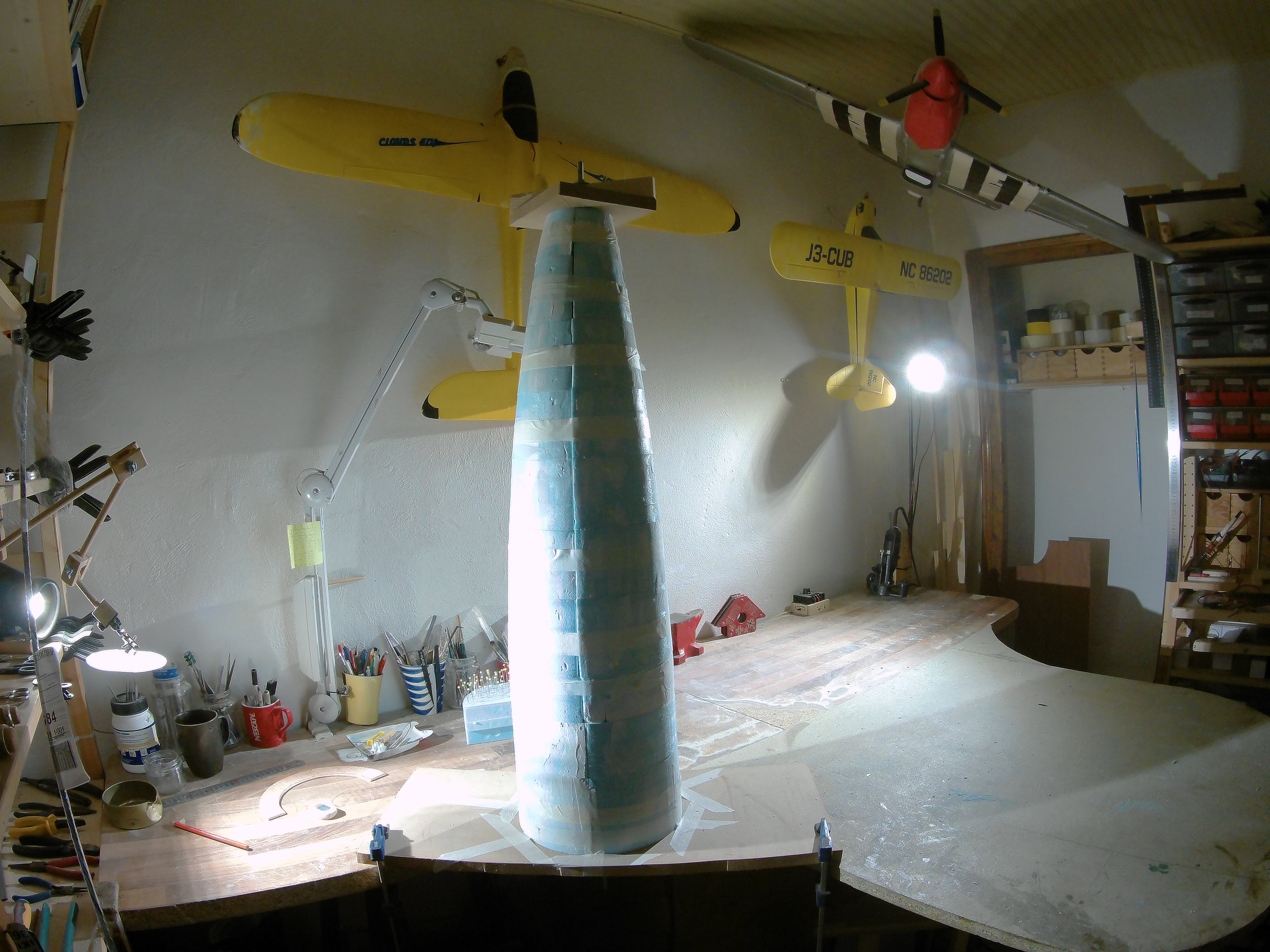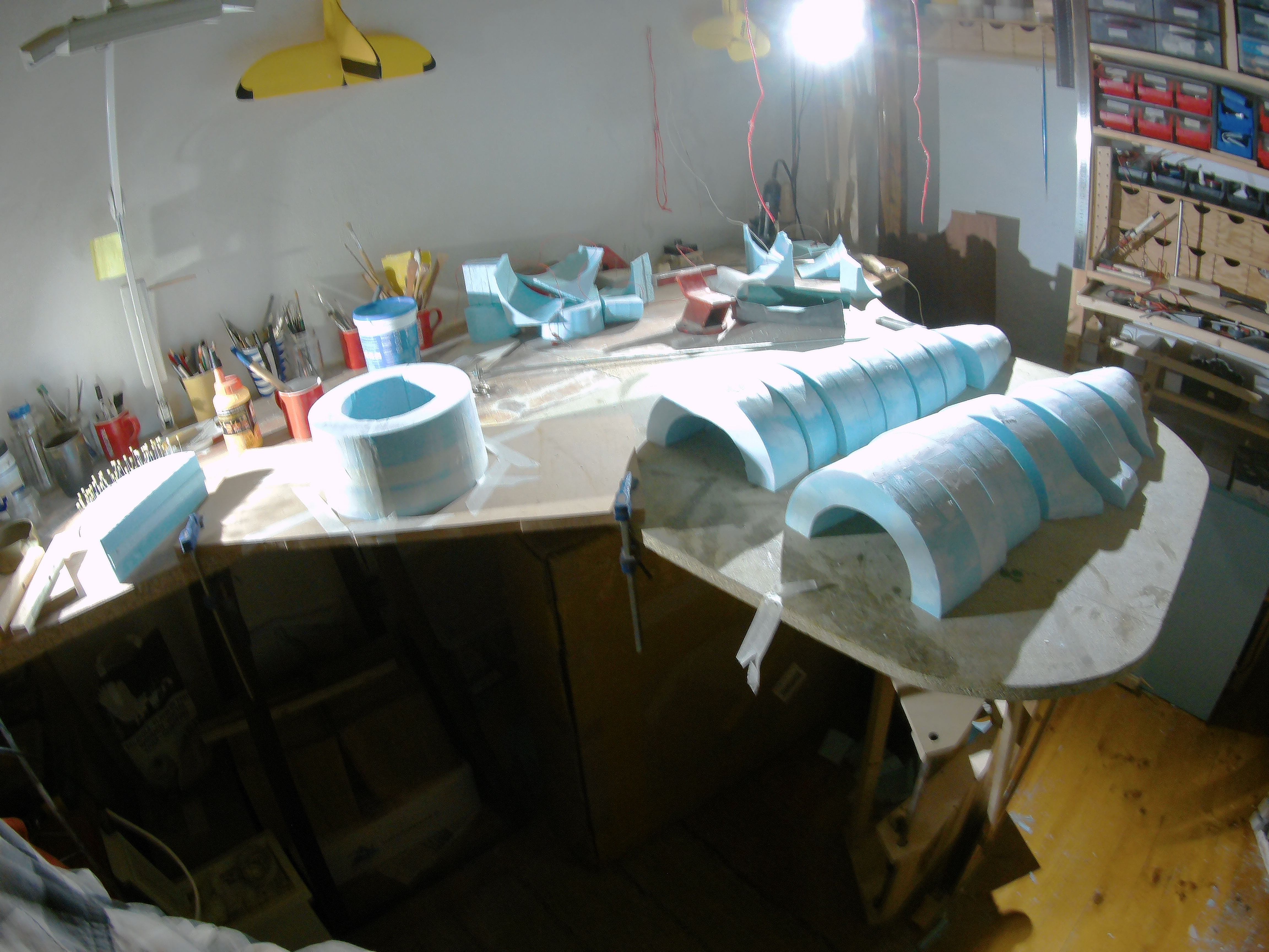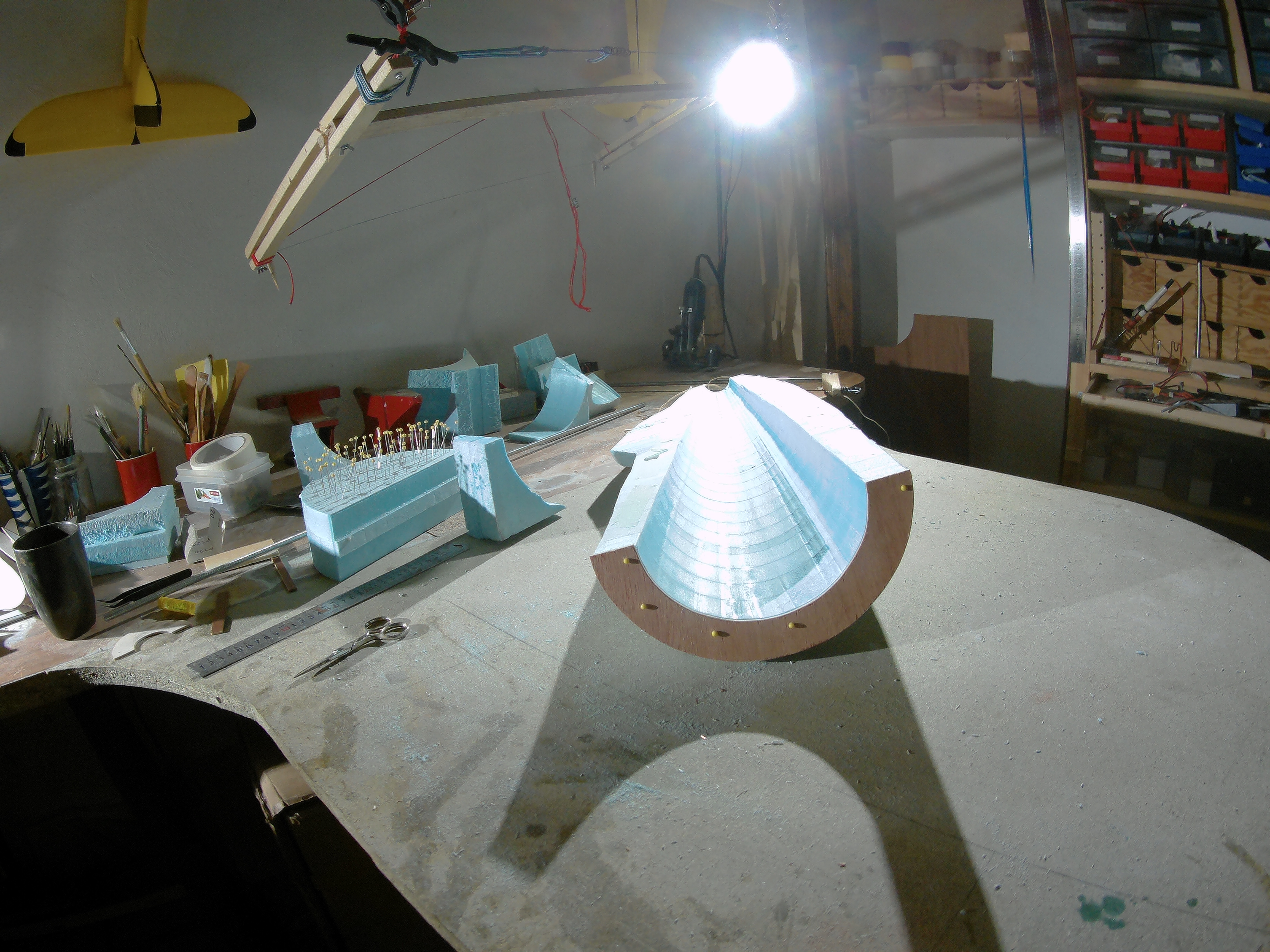Pero como no hay mal que cien años dure, en mi peregrinación semanal a Leroy , ya que suelen variar bastante los tipos de material ¡¡ tenian poli en planchas de 80 mm !!, ya no tendré que seguir pegando ,lijando, etc... , cosa que no me hacia mucha gracia, mas que nada por las alas, que siempre se cortaran mejor de un bloque limpio, sin cola pol medio, la idea final es hacer lo a escala 1:6, reforzado entero con fibra de vidrio y Jesmonite, una resina acrílica y reforzado con varillas , el tren de aterrizaje con poleas, semejante al original, pero muy simplificado, es un sistema que se invento un modelista ruso, anda por Youtube, y el conjunto procurare que sea lo mas parecido al original que mis dotes consigan, el fuselaje esta cortado y pegando, seguiré informando según valla haciendo etapas, pero sera lento, ya que según os dije, estoy aprendiendo y solucionando los problemas sobre la marcha voy poner unas fotos-