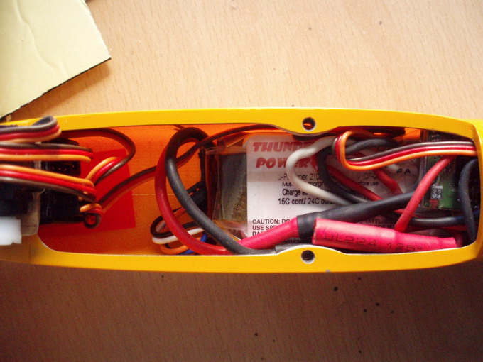 Voy a intentar poner unas fotos del interior porque se convierte un un trabajo de relojero suizo conseguir meter dentro los servos, la lipo y el regulador.