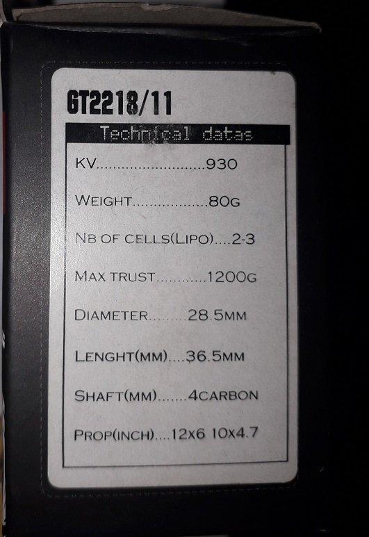 Estoy a falta de recibir unas baterías de 3S, un adaptador para hélice y una hélice 8x6 ya que tengo una 9x6 y así probar con cual va mejor.