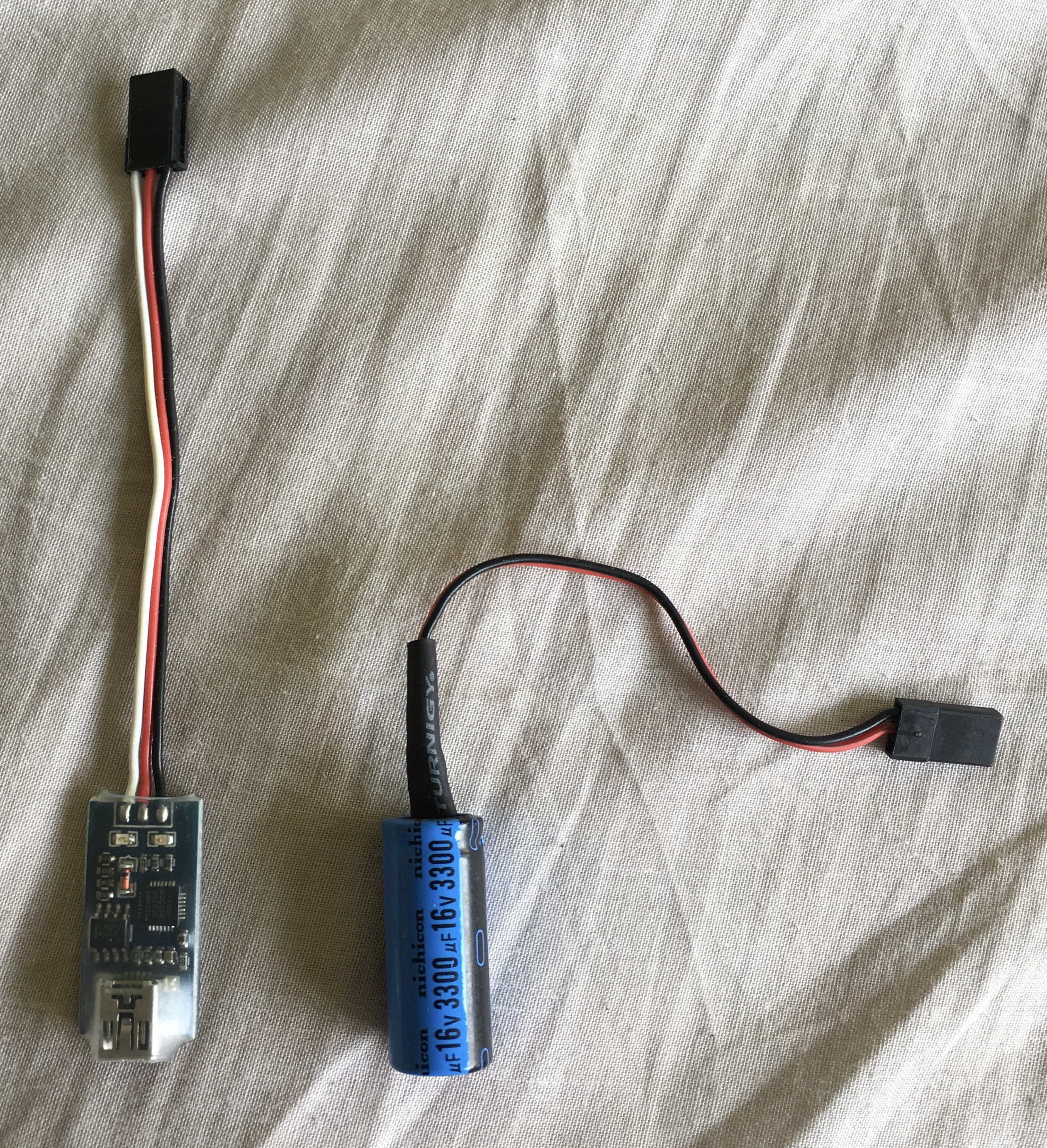 El del USB ni idea, tal vez un programador para receptor. El cilindro es un condensador que se mete para quitar ruido y picos en el receptor.