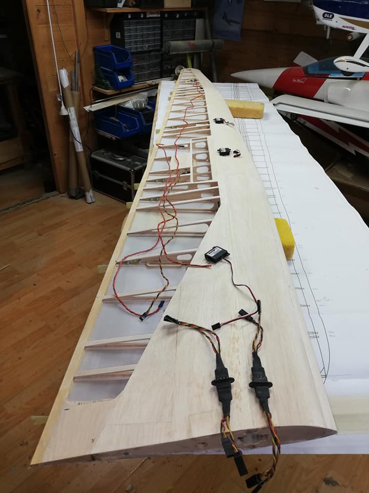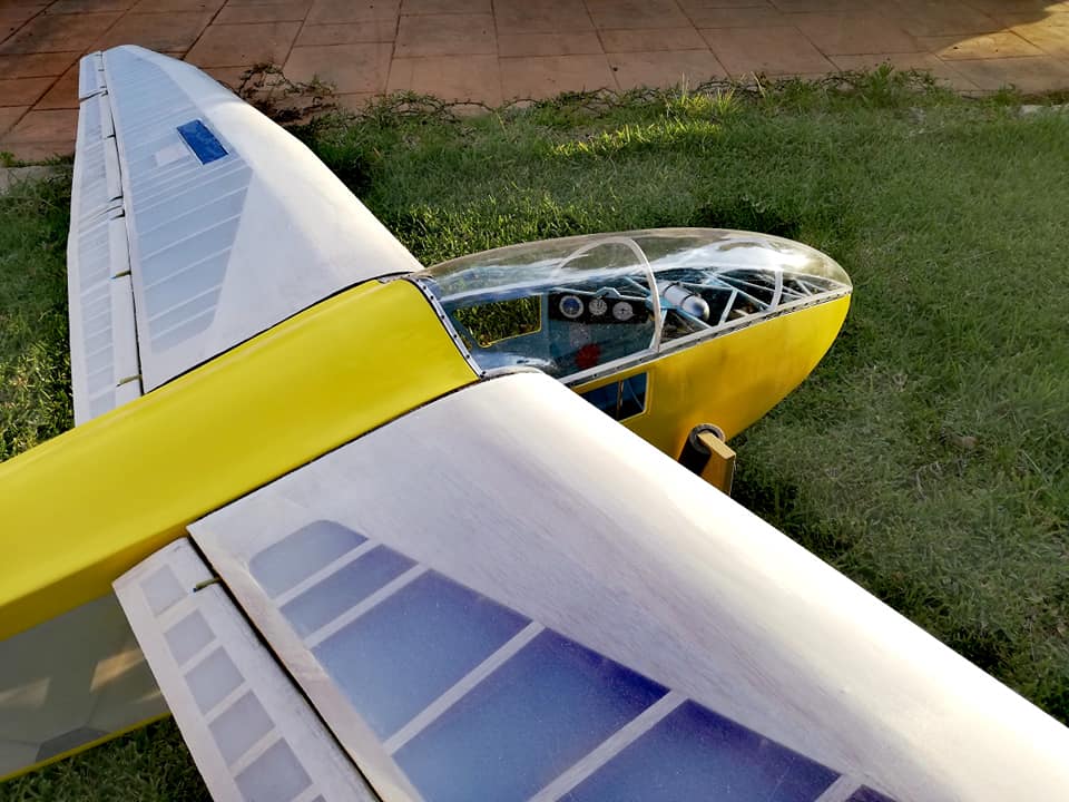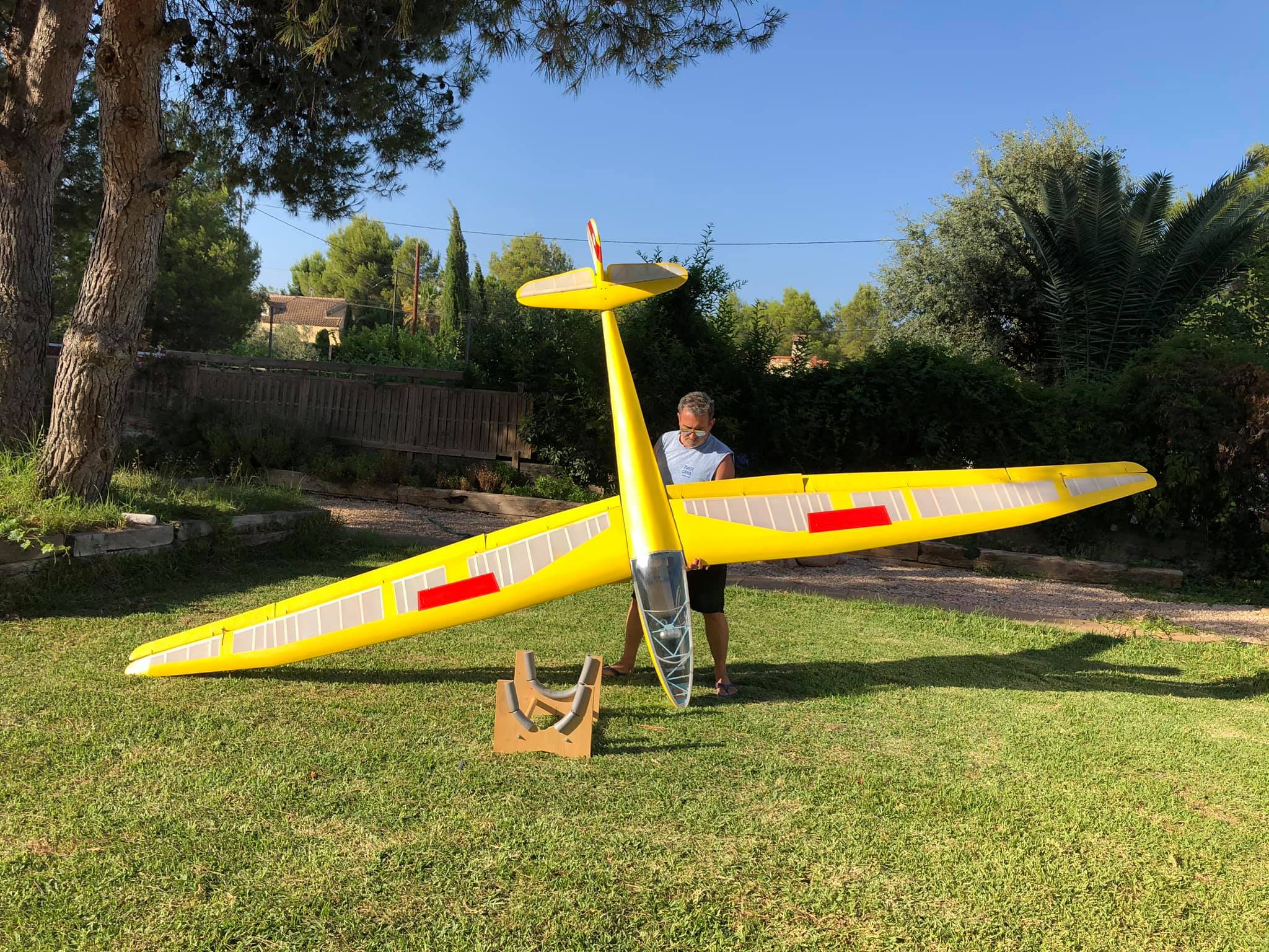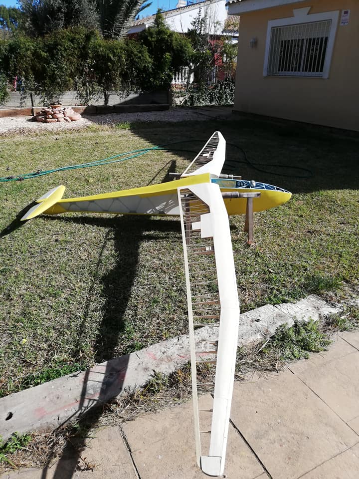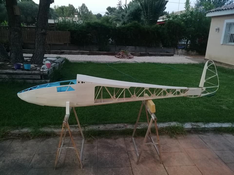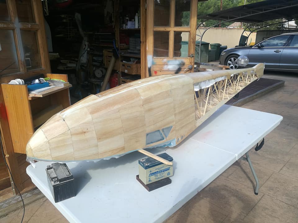 Por el resto os dejo unas imágenes de los dos años de trabajo, el recubrimiento es Koverall con Novavia, la pintura comercial , los servos nada del otro mundo y equipa un interruptor de gestión para dos baterías , su vuelo es majestuoso y calmado , y su silueta es inconfundible en el aire , mas tarde intento poneros un video del estreno .
