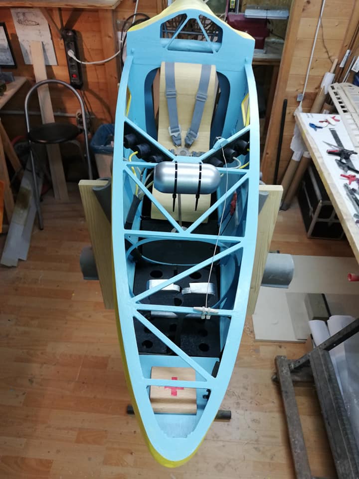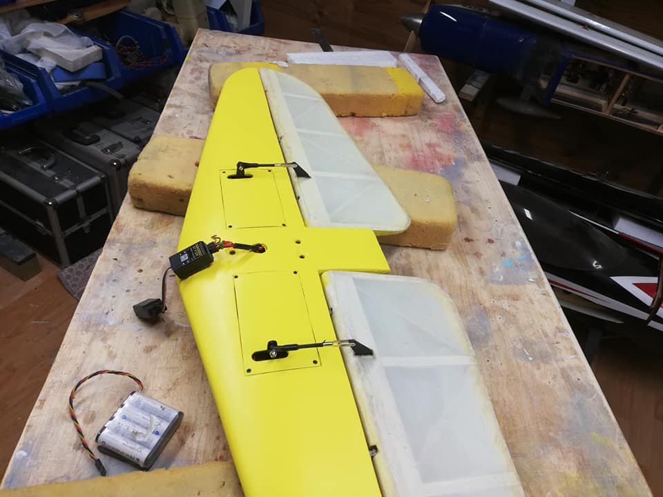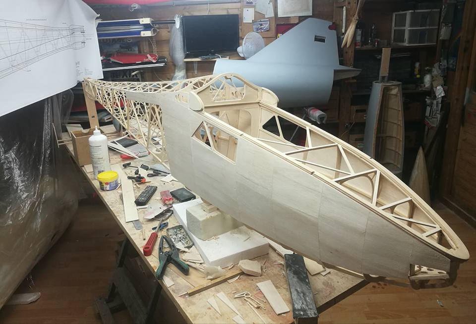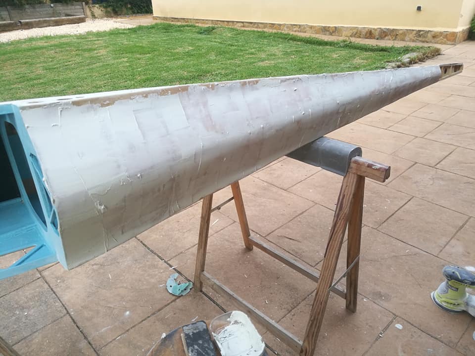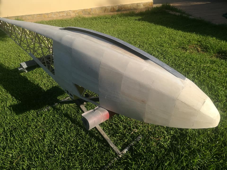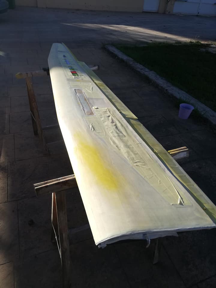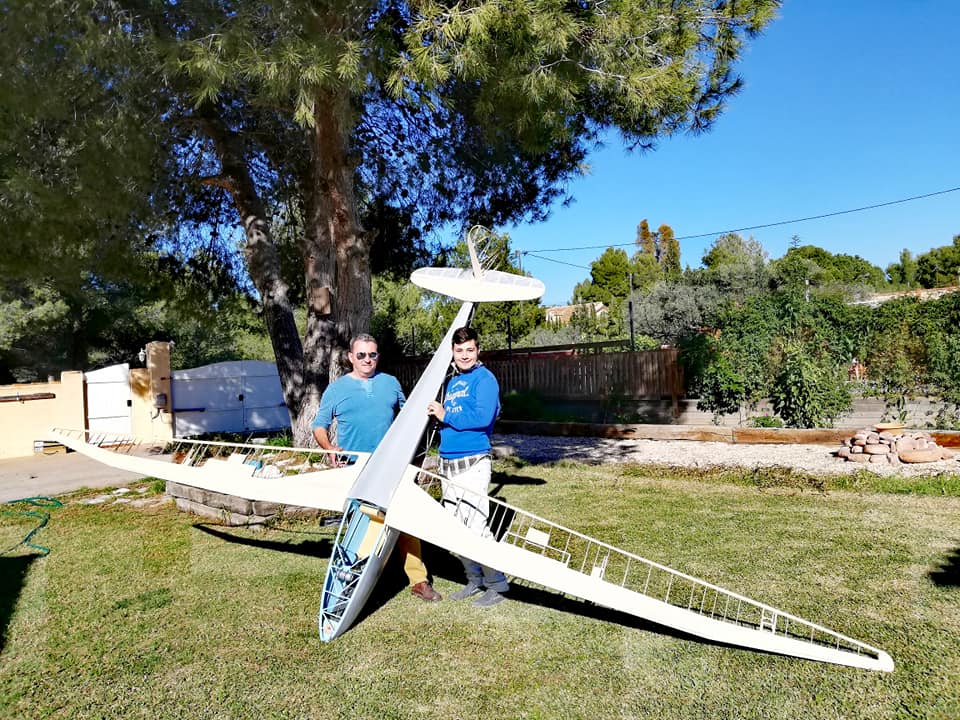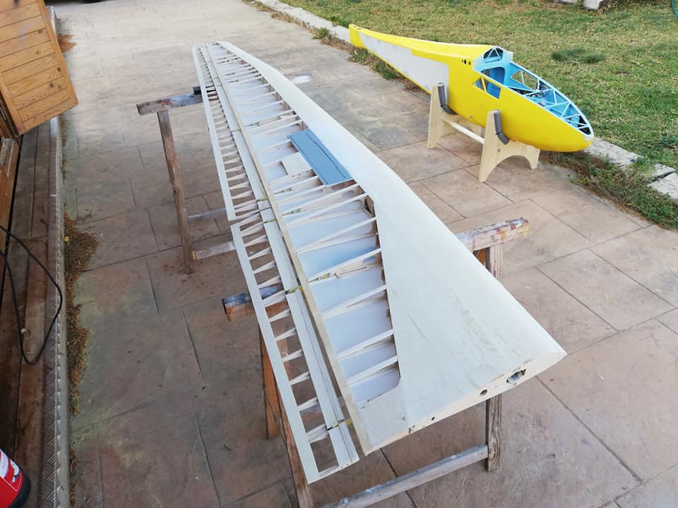 Por el resto os dejo unas imágenes de los dos años de trabajo, el recubrimiento es Koverall con Novavia, la pintura comercial , los servos nada del otro mundo y equipa un interruptor de gestión para dos baterías , su vuelo es majestuoso y calmado , y su silueta es inconfundible en el aire , mas tarde intento poneros un video del estreno .