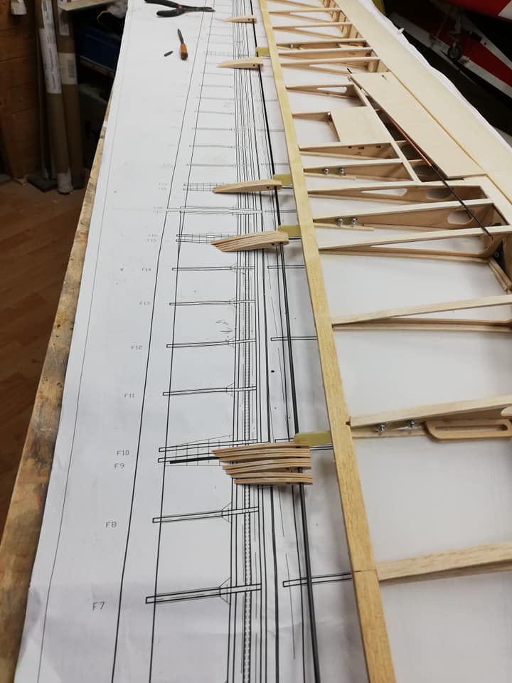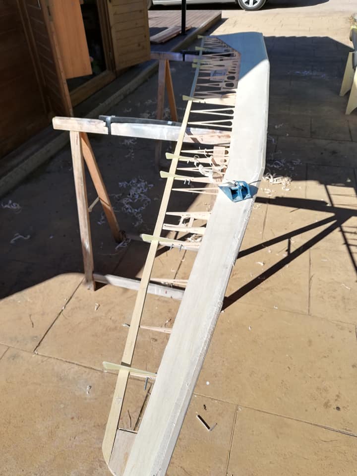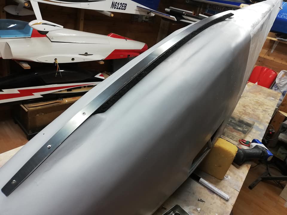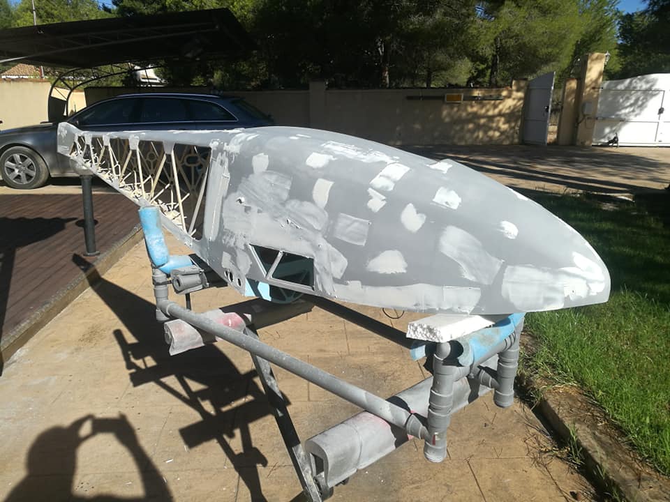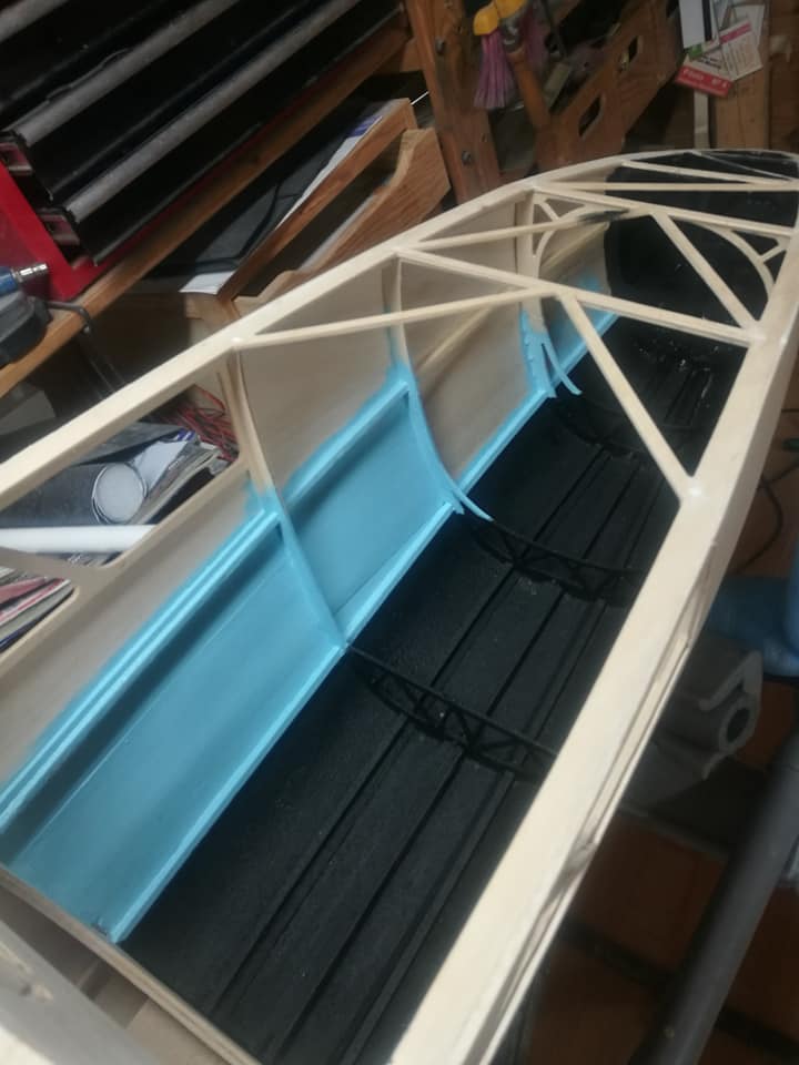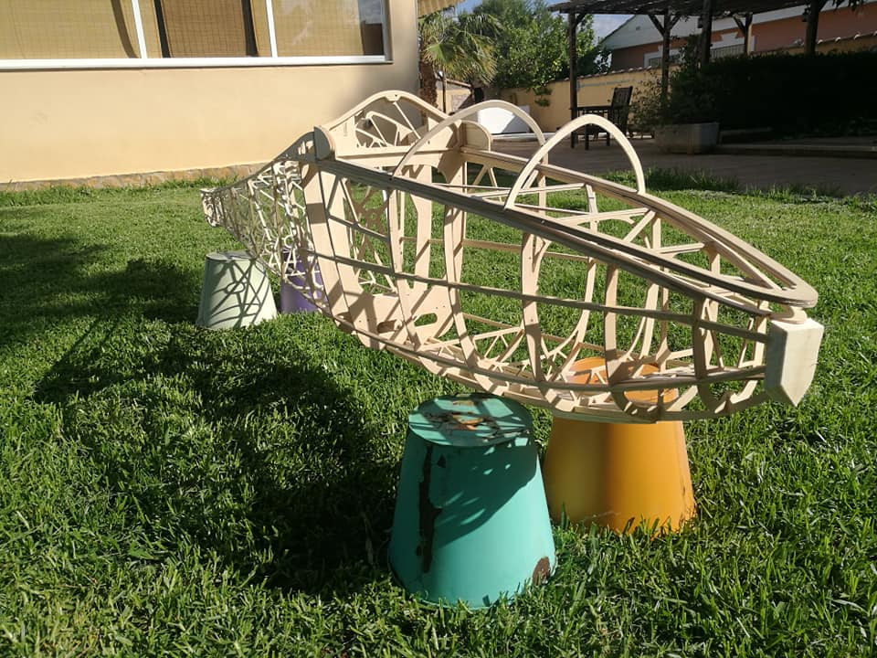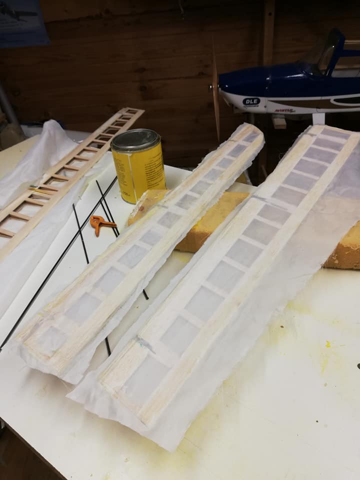 Por el resto os dejo unas imágenes de los dos años de trabajo, el recubrimiento es Koverall con Novavia, la pintura comercial , los servos nada del otro mundo y equipa un interruptor de gestión para dos baterías , su vuelo es majestuoso y calmado , y su silueta es inconfundible en el aire , mas tarde intento poneros un video del estreno .
