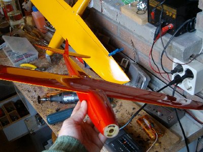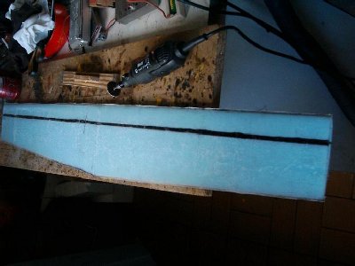Y puestos a empezar, comenzaría por el ala, si no sabemos sacarla en porex, habrá que buscarse un amiguete del club para que nos ayude a cortarlas, enchaparlas con madera de enchapar puertas con presión y cola blanca que es muy barata es fácil, se mete el porex en sus camas se da el pegamento se pone la chapa de madera y un plástico por arriba y otro por abajo, too metido dentro de sus camas y a ponerle peso encima. (los libros van bien). tambien se puede prensar entre dos tablas de aglomerado y presarlo todo con gatos, si pegamos todo esto con epoxy en 1 dia tendremos el ala casi lista.