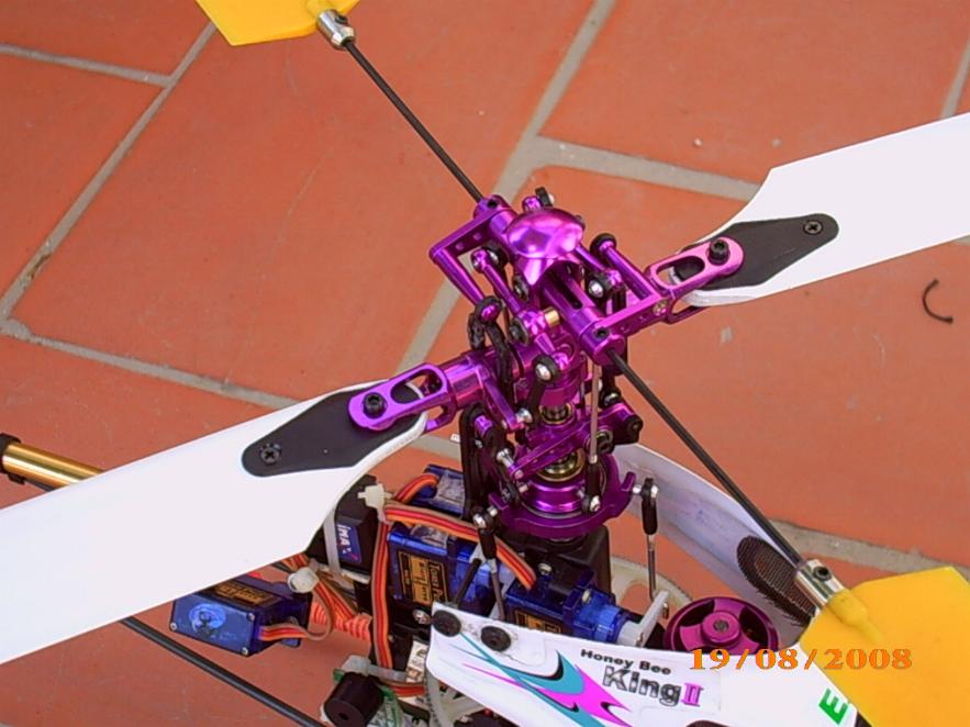 Hola Miguel te comento ya que tal vez lo leyeras en el post del Belt o del Cp2, en ambos ya postee mis experiencia como ya realizaron algunos amigos, te comento, el Belt con palas del King, lo hace muy pero muy nervios, y su manejo se hace muy inestable, teniendo que hacer mucho dedo. Ahora bien si le colocas unas de 325, un centímetro más de su medida, lo conviertes en un Heli muy dócil, y muy estable, un poco más perezoso que con las originales. Con el CP2 pues pasa más de lo mismo, un centímetro más larga, pues trabaja mejor, en teoría las del Walkera 22, pero de fibra ya que las originales son muy pesadas. Pues bien con relación al King II, esto también se debería de cumplir, entonces que palas usar, teniendo en cuenta que las palas de nuestro nene son de 275, deberíamos colocar unas aspas de varios centímetros más, entre 1 ó 2, ¿Y que palas tenemos? Pues seguramente las del walkera 60, te deberían de valer a la perfección, yo estoy por comprar un juego de estas por probar http://cgi.ebay.es/6x-Pales-Lame-Main-B ... m153.l1262 ya se sabe que me encanta probar, ya que las del Belt de origen la veo muy grande, los comentados 315.