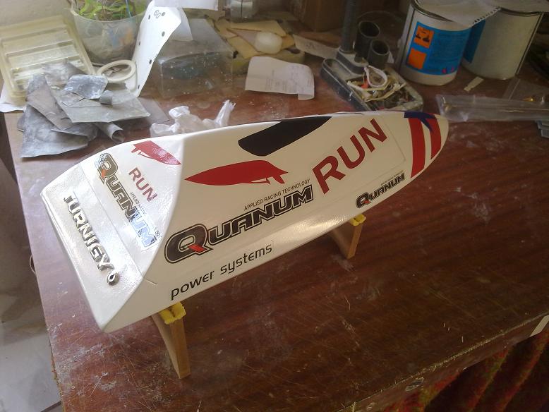 Sí es casi como una shark, la hice de unos planos que vi por internet es una kukorelly torpy que es muy parecida, tiene la joroba como la shark y el casco lo he echo como la shark. Así que es prima hermana jjjjj. Y bueno aquí como no competimos sólo hacemos exhibiciones y nos lo pasamos pipa corriendo entre colegas pues sólo nos hace falta que no boten tanto. Por cierto todas las lanchas están hechas idénticas y montan la misma equipación hasta el último detalle, así que las carreras son la leche jjjj muy igualadas y divertidas jjjj