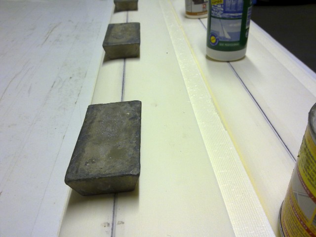 Los materiales serán muy económicos y fáciles de conseguir: poliestireno expandido de densidad 20Kg/m^3 recubierto con chapa de haya vaporizada, largueros de pino de 7x5 y bayoneta de acero de 5mm de diámetro, lo mismo que el Escuela.