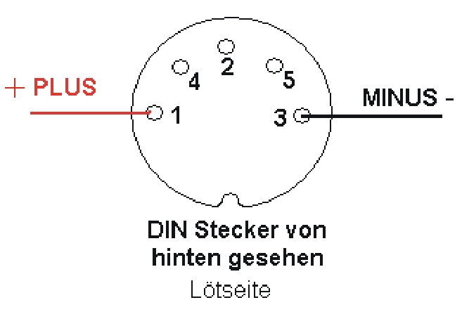 En aleman, lo que pone ahi significa que esta visto por la parte de detras (lado de la soldadura). Desmontas, y por el lado interno del conector, sueldas el positivo al 1 y el negativo al 5.