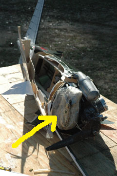 Ambos colegas, después de deliberar un rato llegan a la conclusión que hay que poner "peso" en el morro y ya que estamos en el campo de vuelo... QUE MEJOR QUE UNA BUENA PIEDRA!!