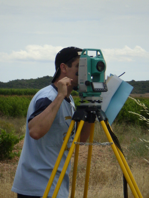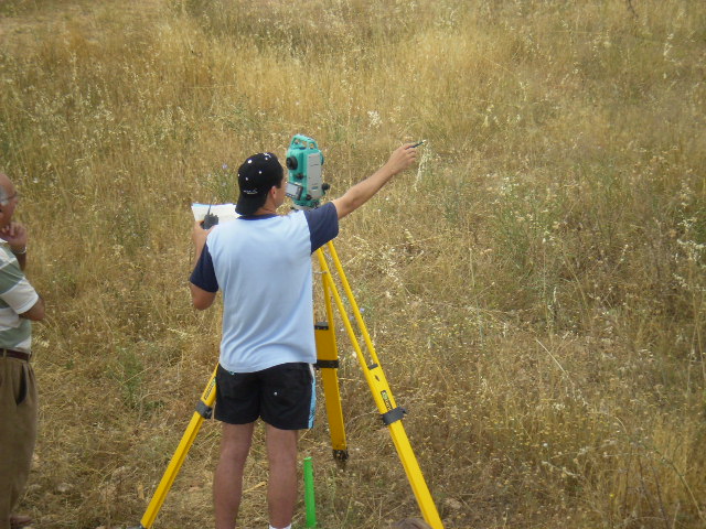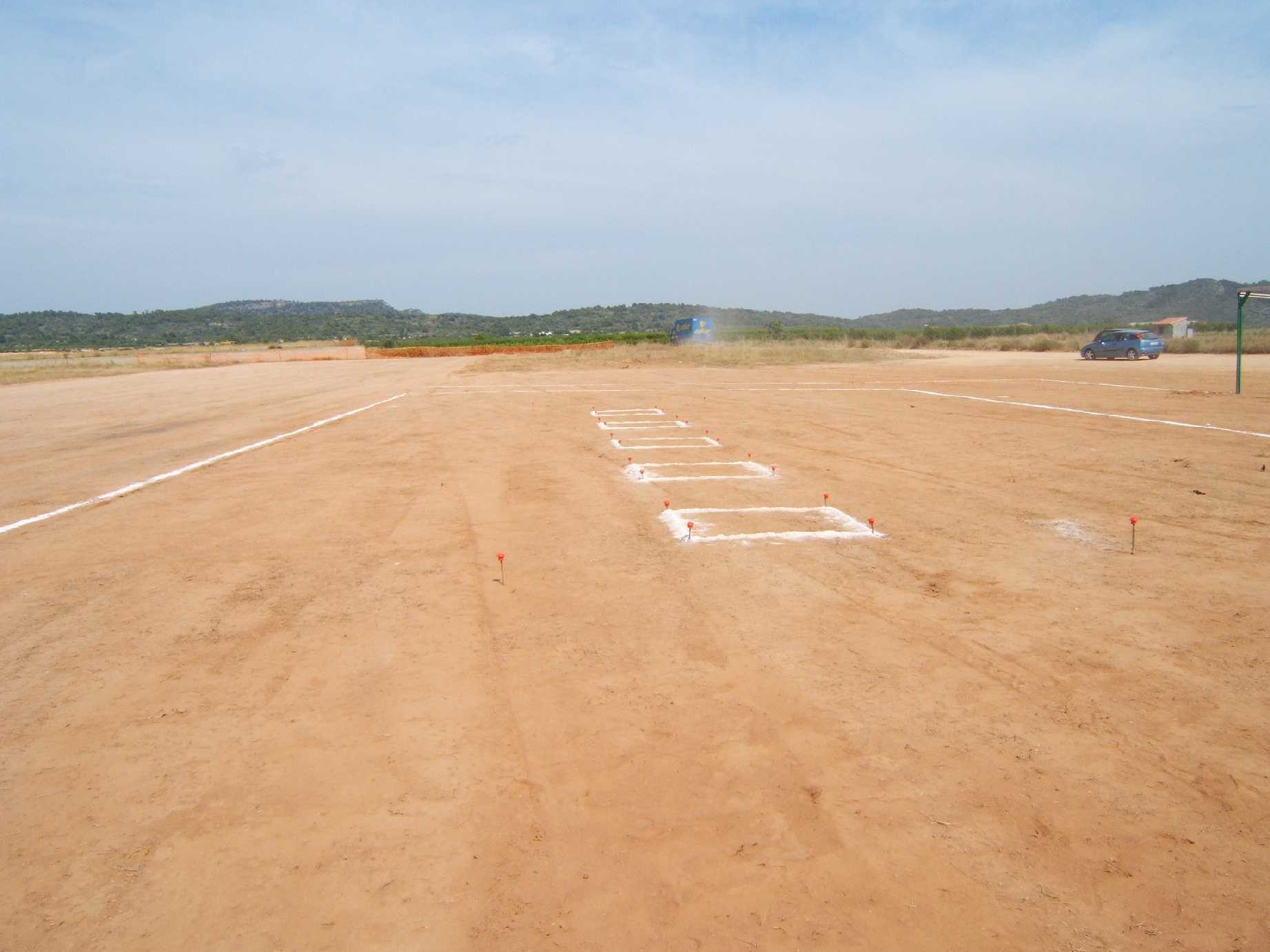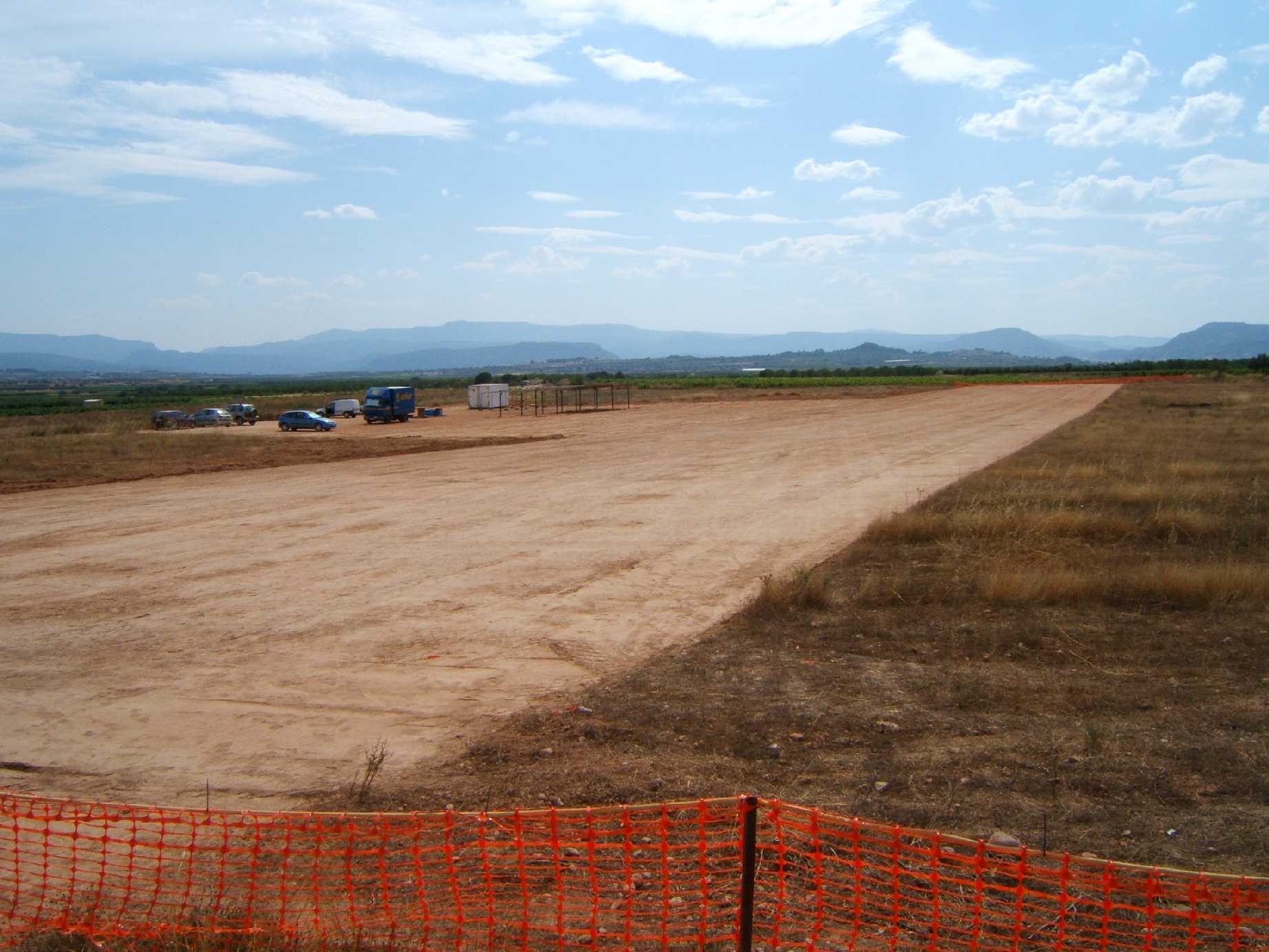 Hemos marcado los puntos de pilotaje y los carriles de entrada y salida a pista, hemos introducido piquetas para que llegado el momento del asfaltado este replanteado ya todo el terreno.