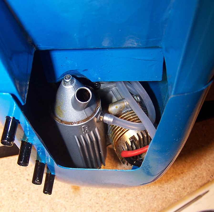 Hola estoy montando una semimaqueta y le he puesto un Saito 125 en invertido pero el escape no me quedaba dentro de la carena y dando le vueltas e podido meterlo dentro, pero como es mi primer motor de 4t no se si se puede dejar el escape dentro de la carena y de la forma que la e puesto ya que los gases tendían que ser expulsados por encima del motor pongo foto.......Gracias por adelantado Slu2.º