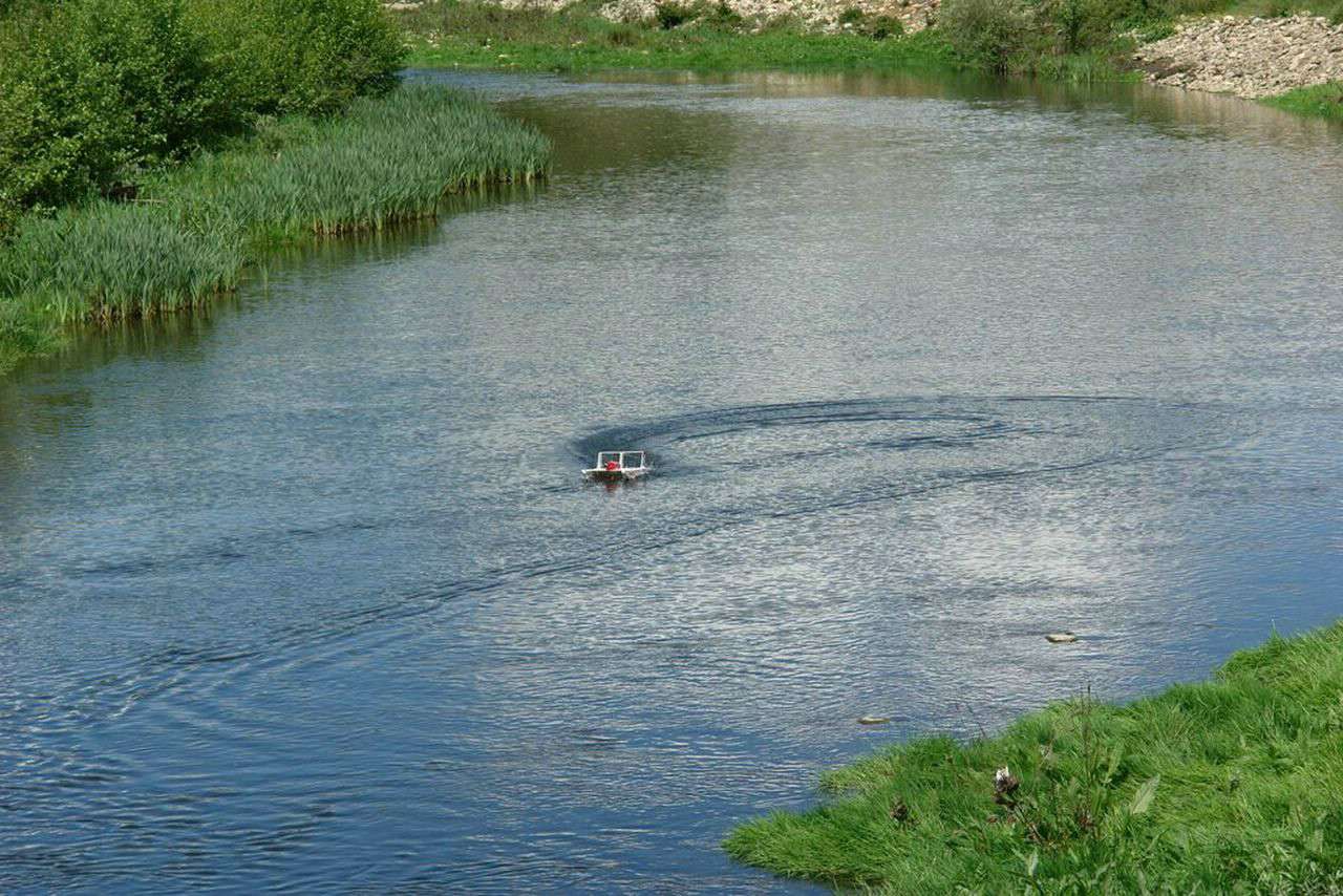 pues la verdad es q no me pega la elice en el agua supongo q es por lo q dice boeza lo llevo unpoco tirado para atras para q no suba pero lo justo para q tampoco se despegue del agua y va como suspendido por encima del agua,una pasada.ahora esta en el taller q sufrio un aterrizaje de estos de sin queriendo jajajja,un saludete
