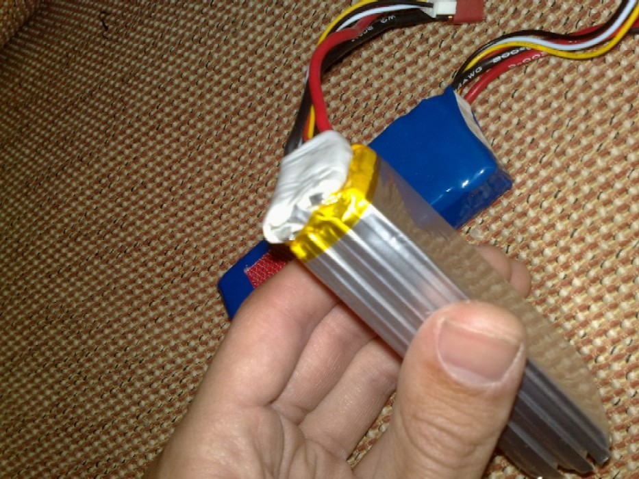 No obstante cada una de las celdas tiene carga correcta,pero las abolladuras de la bateria no me fio ni de cargarlas. vosotros me aconsejareis,pero no me la juego mucho.una bateria de 20 euros no compensa destrozar un avion de casi 300.