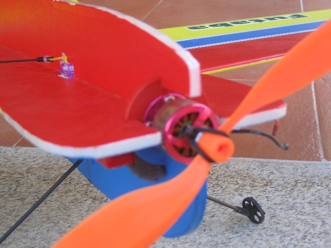 Decir que la criatura vuela como los ángeles. Sólo lo he volado en exterior y disfrutas como un enano aún si hay una ligera brisa. Está construido con deprón de 6mm, baterias CW 3S 860mA, motor Brushless Outrunner 1500KV CW...