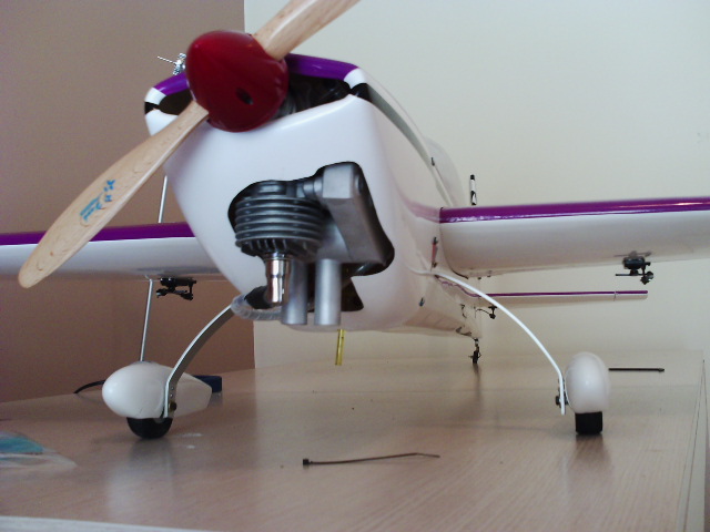 hola, yo tengo el mismo en morado pero le voy a montar un 90 glow,pero tengo el problema del escape que me sale por el lado. en las fotos de tu avion he visto que a ti tambien,como le vas a poner la carena sin hacerle demasiado daño.