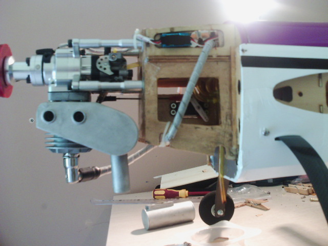 Como es un modelo que viene preparado para un glow de 60/90 4t le he tenido que adaptar el morro para acoplar el de gasolina.
