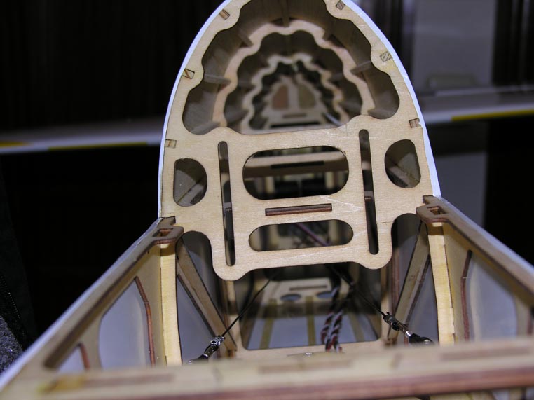 La carena lleva un curioso sistema de fijación ya que los habituales tornillos que ponemos en su lateral no existen, ahora estos tornillos van por detrás de la cuaderna principal del fuselaje, roscando sobre una cuaderna (totalmente aligerada) que lleva la carena en su interior. El resultado es que no hay tornillos de sujeción de la carena a la vista ni se rajara la carena por ahí con las vibraciones.