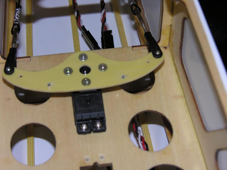 Otra cosa que me ha llamado la atención es que del juego de adaptadores para el push pull, dos de ellos traen dos agujeros en lugar de uno para el cable, pues bien, no son dos para pasar el cable a tu antojo uno de los dos es para sujetar el muelle que accionara el patín de cola. Por supuesto es una deducción ya que en el manual de instrucciones ni pío. Por cierto que el diseñador del costado del fuselaje, tampoco ha previsto la salida de cables, hay tres agujeros (redondos) y no hay opción de poner uno tipo ranura. Elije el que mejor que vaya.
