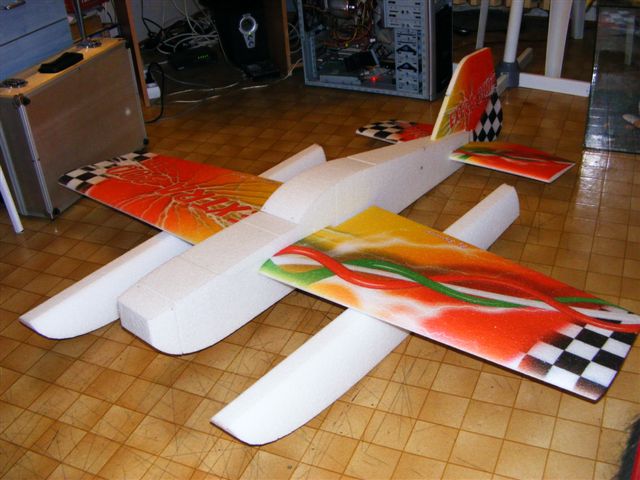 y las varillas de carbono de refuerzo, esas no vienen, de las del declathon valen, este pediria en el ala una varilla de 8 mm y en timon de profundidad minimo de 4, si le pones en direccion mejor.. por lo demas servos, motor, esc y todo lo demas tb hay que añadirlo, el montaje... sencillo, en una hora y media de trabajo seguido esta listo para volar..