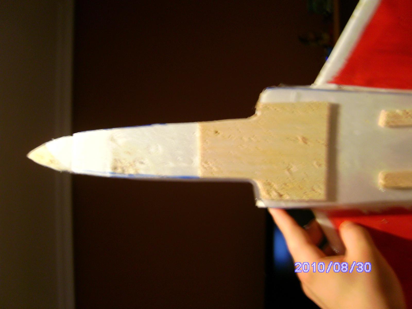 aqui se aprecia como se ha astillado la balsa y un trozo de depron que se le debio caer el film autoadesivo¡¡¡