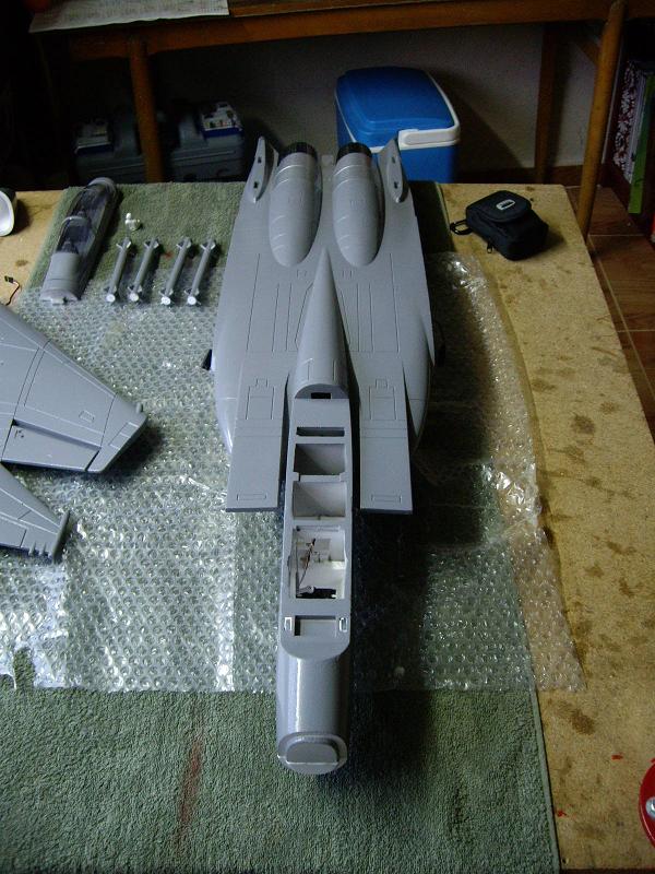 Bueno, pues como mejora, y en vista de lo bien que vuela este modelo, y después de que una chinita entrase en el conducto del fan y se cargase éste, hemos sometido al F-15 a "cirugía"; la operación es fácil y no entraña daños alguno si manipulamos con cuidado.