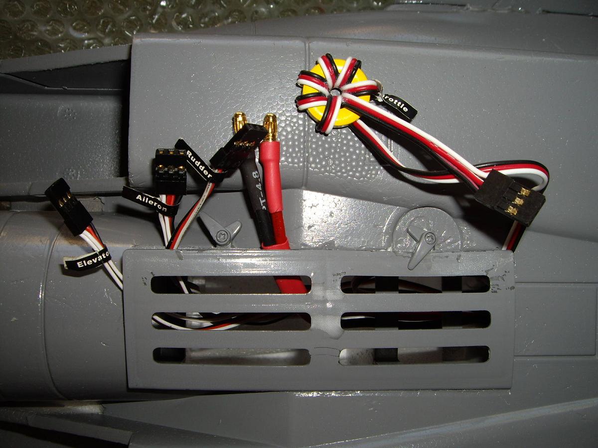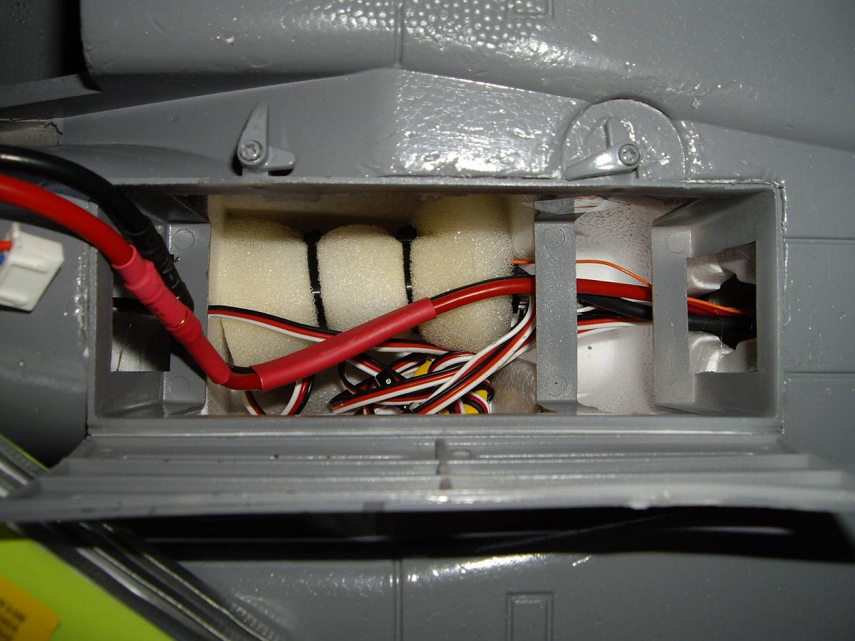 ... Y debajo de la LiPo, el receptor (véase la antena de éste, discurrir por dentro del fuselaje, adentándose en el conducto de aire, hacia el fan eléctrico)