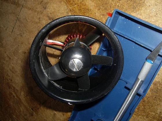 1.- Simplemente hay que pasar la hoja de la cuchilla por el perfil de la tapa del fan (cuidado con el paso de cables de éste); para sacar la tapa, como viene la carcasa del fan pegada a ésta, hay que "dar cuerda" al ESC... me explico: si tiramos de la tapa, los cables empezarán a tensarse, y nos volveremos locos pasando la cuchilla para quitar restos de pegamento... y lo que nos está impidiendo sacar la tapa son los cables (por eso digo de "dar cuerda" al ESC... hay que soltar los cables -de baterías y del canal 3- para que salga todo el conjunto fan+motor+esc).