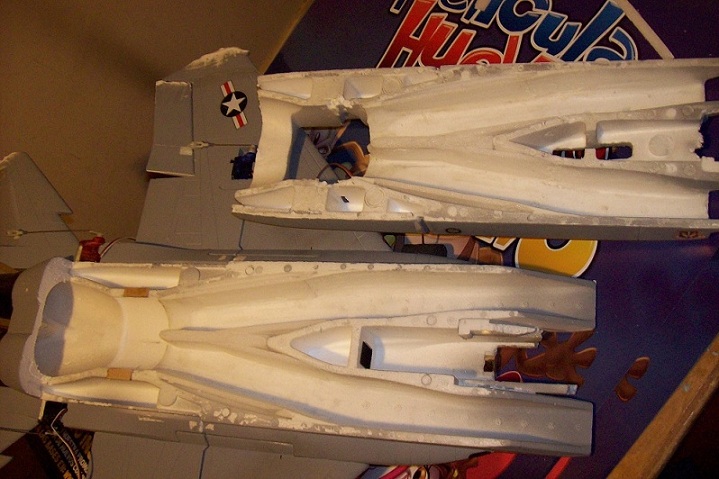 Para empesar le desmonte todo y lo corte por la mitad, ahora le voy hacer con foam y pasta los ductos, le voy adaptar un EDF de 70mm. y a ver que tal queda.