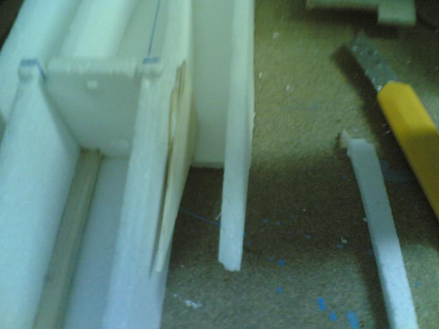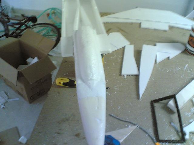 lo que pasa es que orinilamente se utiliza depron de 6 mm y yo utilice corcho blanco de 1 cm, es mas grueso que el depron, habia pensado con la lija hacerle una especie de borde de ataque.