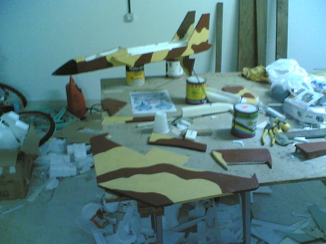 La verdad es que me estaba desanimando con el x-29 , mucho tomate pa un novato, pero bueno seguimos en la brecha, he aprobechado a mi cuñao que es un electricista de los buenos y un manitas pa que me eche una mano ha hacer una mesa cortadora de foam, la hicimos :) (BUENO MAS BIEN HIZO)