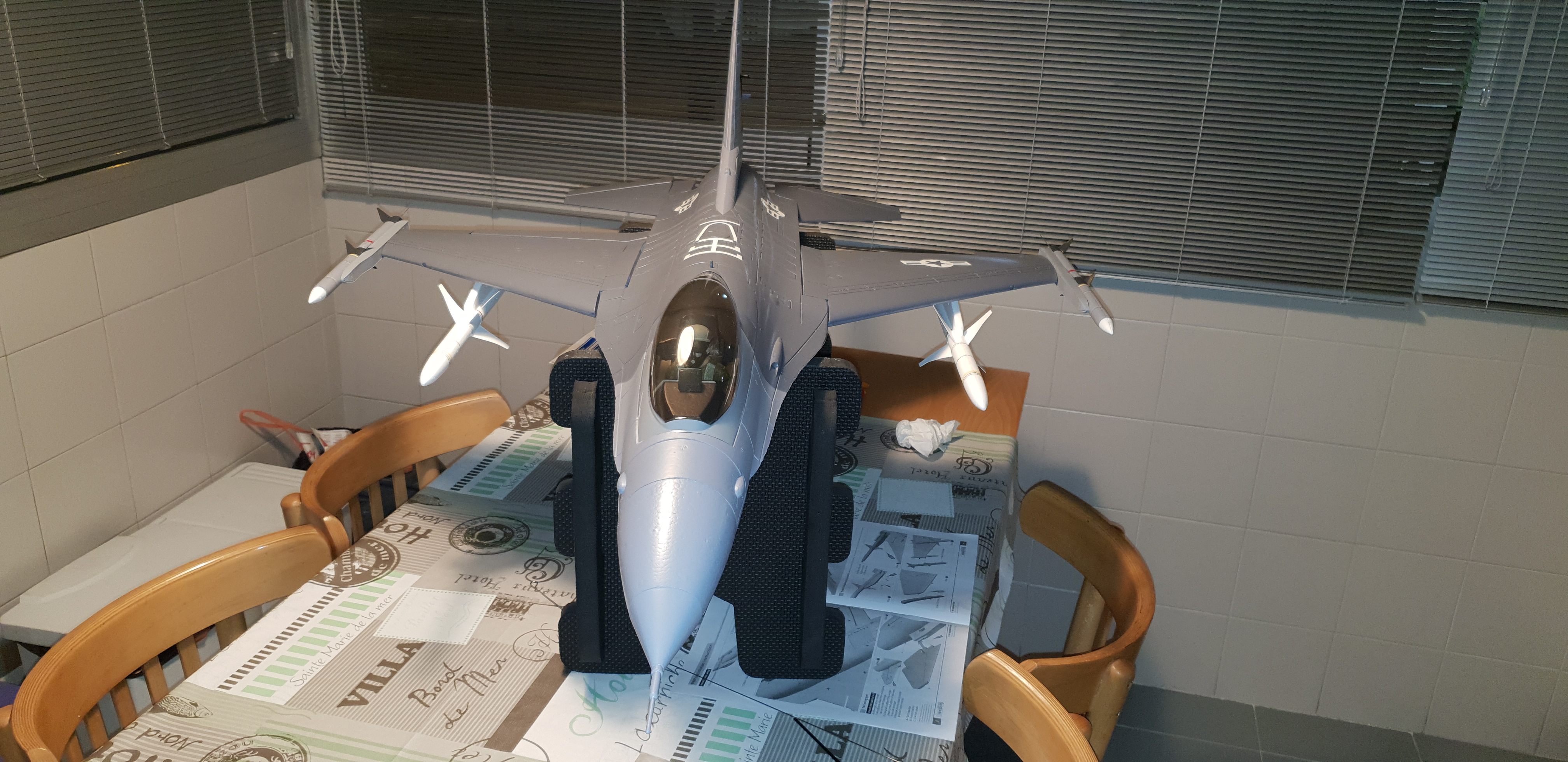 Con todo montado el avion ronda los 2'5 kilos y una carga alar de 145g/dm.