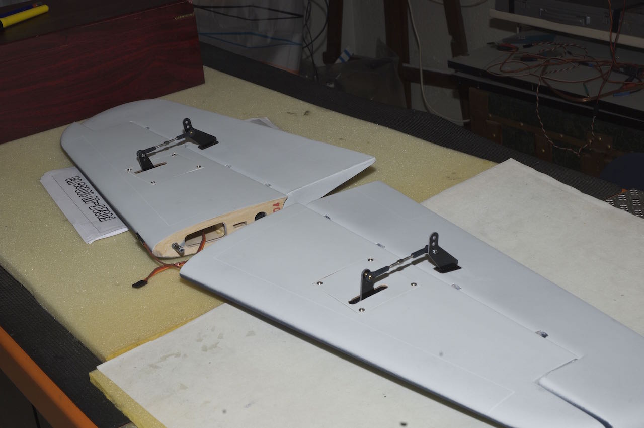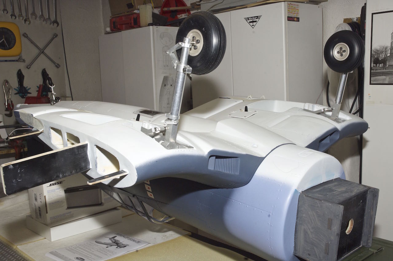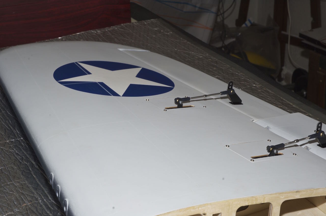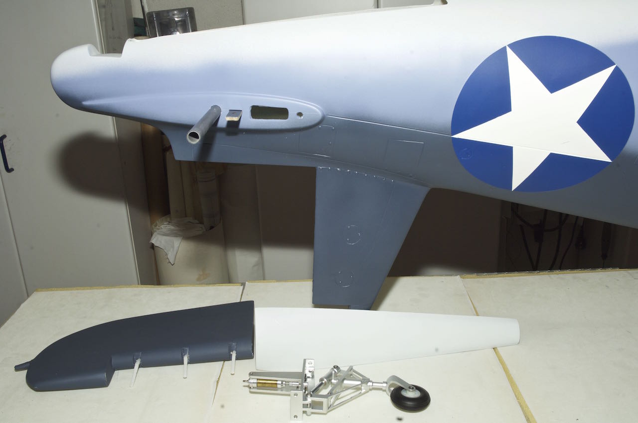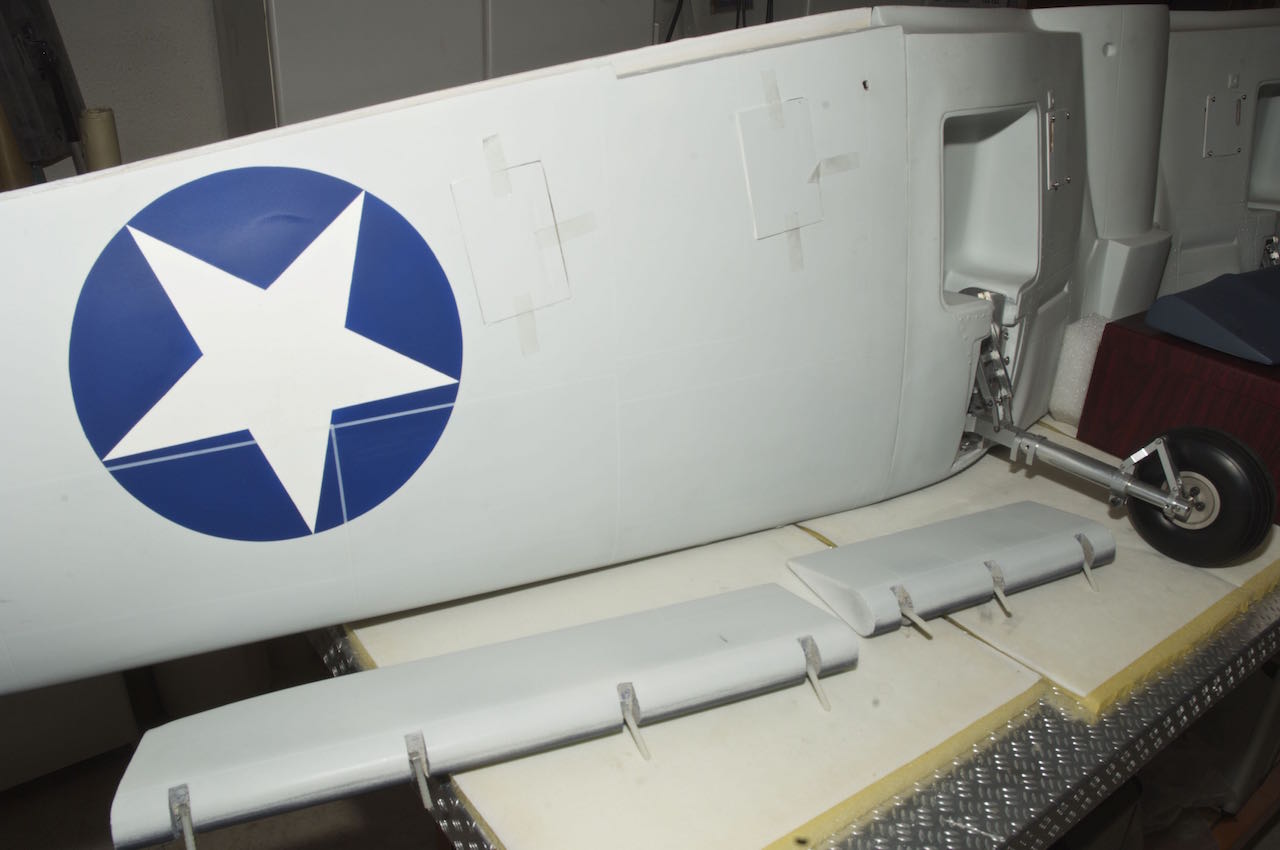Las alas, vienen en tres partes, creo que es una gran idea y así podemos llevarlo en el coche desmontando las puntas de las alas, llama la atención la parte central de las alas, en molde de fibra de vidrio, es muy fuerte y por lo tanto pesado, pero es la parte del avión que sufre más y por esto no me parece mala idea. Los panelados de las alas están pintados.
