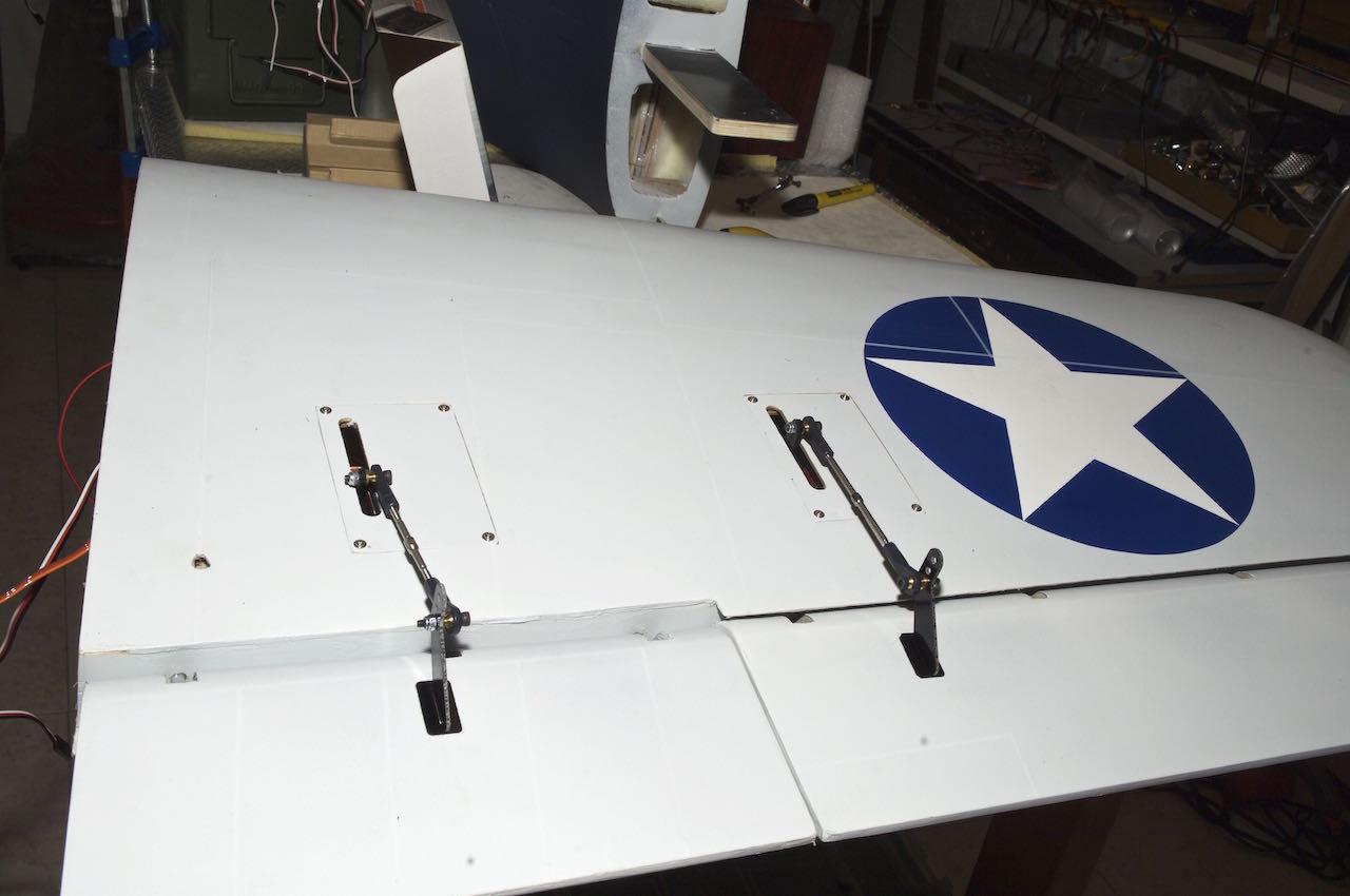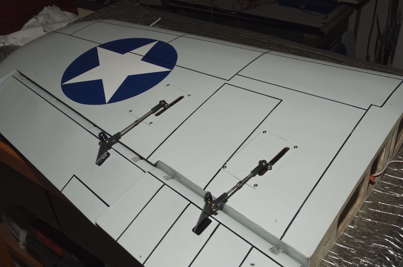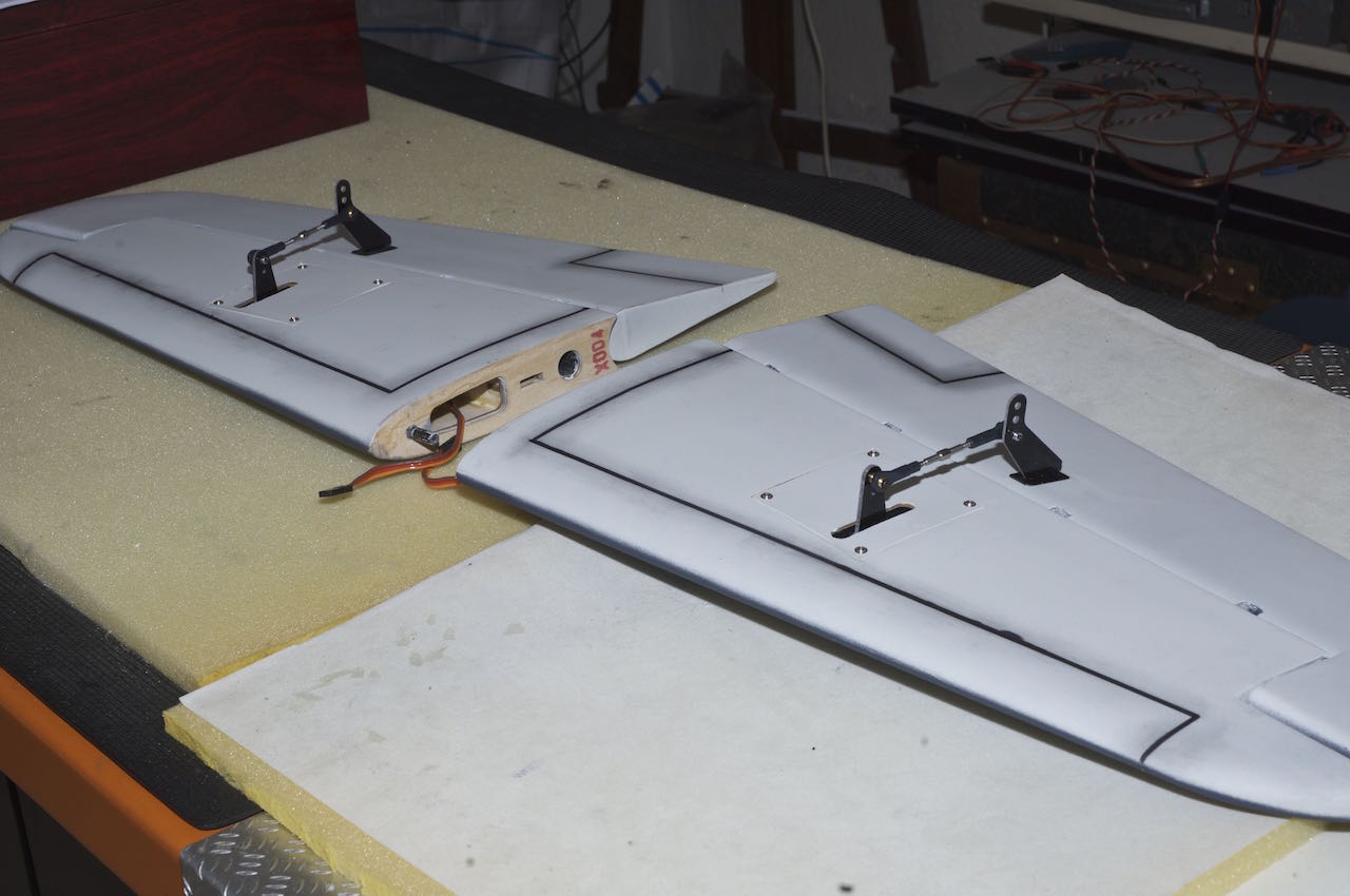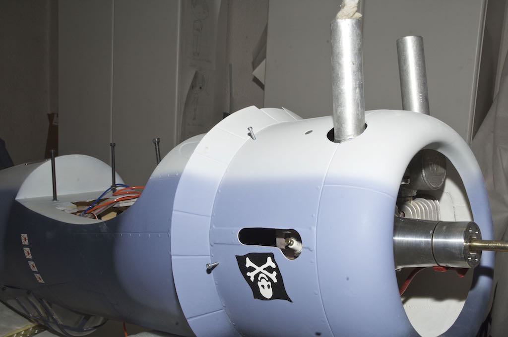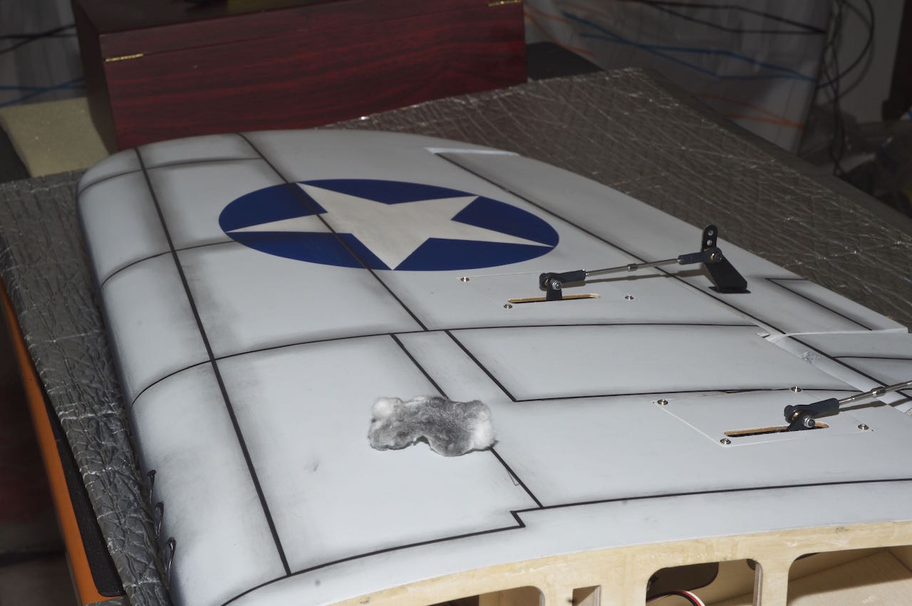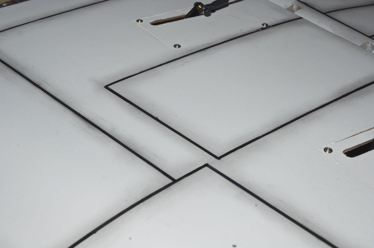Las alas, vienen en tres partes, creo que es una gran idea y así podemos llevarlo en el coche desmontando las puntas de las alas, llama la atención la parte central de las alas, en molde de fibra de vidrio, es muy fuerte y por lo tanto pesado, pero es la parte del avión que sufre más y por esto no me parece mala idea. Los panelados de las alas están pintados.
