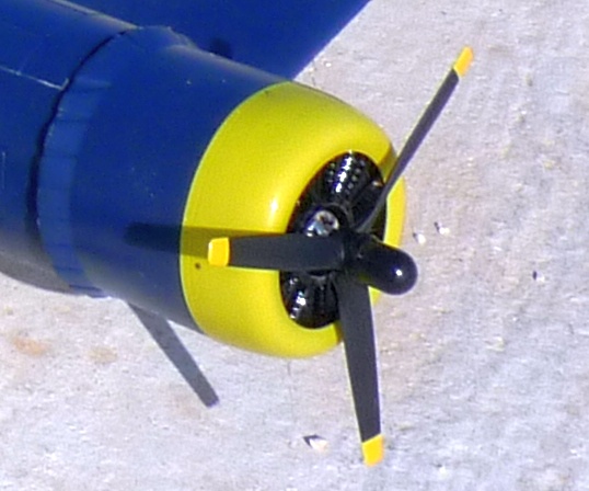 Otra cosa que me ha pasado, es que para poder colocarle el motor que comento más arriba con su eje de la hélice en aluminio de 6 mm. (el que va atornillado al motor) he tenido que recortarle, a la careta negra del morro que simula el motor radial, el cono del centro, dejando una abertura de unos 40 mm.