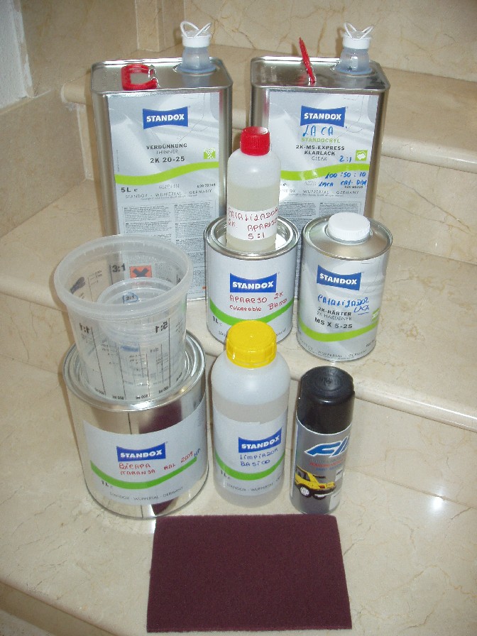 El aparejo y la base bicapa de Standox son excepcionales. Cuando tocan la base, con el mismo aire del compresor seca y es dificil que quede mal, además cubren que es una gozada. El metalizado es homogéneo incluso pasando varias veces. Además, al secar tan rápido es raro que pueda pulverizarse polvo, insectos u otras motas, con lo que el acabado es impecable a poco pulso que se tenga.