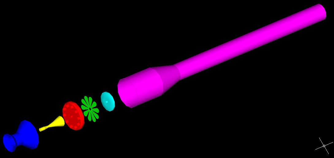 El armado del cabezal es igualmente simple, la cabeza de valculas irá atornillada al asiento de valvulos con tornillos de metrica 2 o 3, el asiento de valvulas va dentro del tubo de la camara de combustion probablemente agarrado con una abrazadera grande.