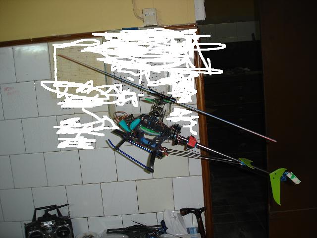 vista frontal del heli colgado con lipo, se puede apreciar que no hay inclinacion acia ningun lado, casi perfecto¡¡¡¡¡¡¡¡¡¡¡