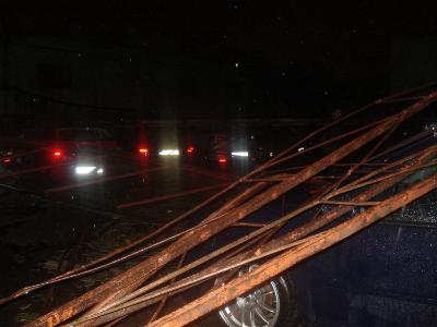 Por allí llueve pero yo aun estoy acogonado, acaba de pasar un mini tornado por delante de casa, se ha movido todo el edificio, y por delante de mi ventana a pasado un tejado de chapa de unos 50 metros cuadrados de una bolera que tengo enfrente, aun estoy acogonado, he abajado a ver el coche, y he tenido mucha suerte tres coches más paya hay uno que le ha caído un árbol encima y es siniestro total, la calle parece que ha pasado un gigante, arboles caídos como palillos, una pasada, espero que el recorrido que ha seguido no halla provocado nada en los edificios de nueva construcción como la estación de autobuses y el Vialia, ya que según la hora suele haber gente.