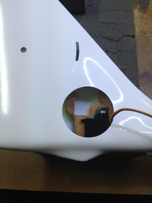 De lo que se trata es de quitar el máximo peso posible de la parte trasera, lo primero que tienes que hacer es cambiar la ubicación del servo de dirección en el fuselaje y colocarlo lo más adelantado posible.