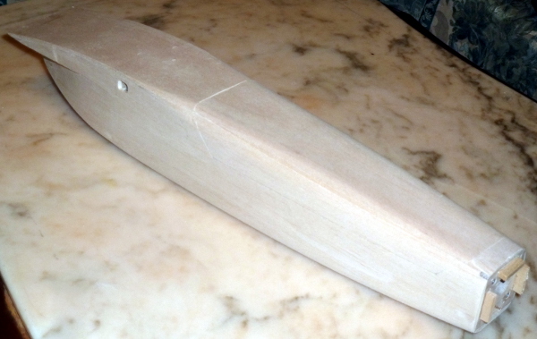Entre el fuselaje en madera y el cono, cubriendo el motor, irá una pequeña carena (no imprescindible para las pruebas) que quiero probar a hacer por el método de aplicar calor a una botella de plástico con un modelo en su interior.