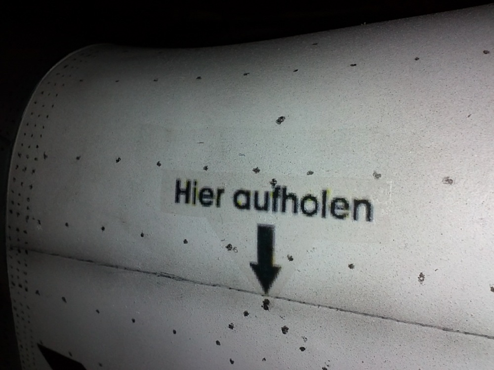 . El punteado lo hice con un lapiz de mina blanda 4B dejandole la punta roma y con una regla un punto cada 5mm. Las formas de las tapas bajo las alas, con una plantilla de cartulina de la que utilizan algunos envases, sobre la cual dibuje la forma de los distintos modelos de tapa que necesitaba, despues las recorté y finalmente con el mismo lápiz las contorneé sobre las alas. He de reconocer que esta es la solución mas facil aunque no menos laboriosa. Ahora puedo decir que lo que mejor se hacer son los puntos