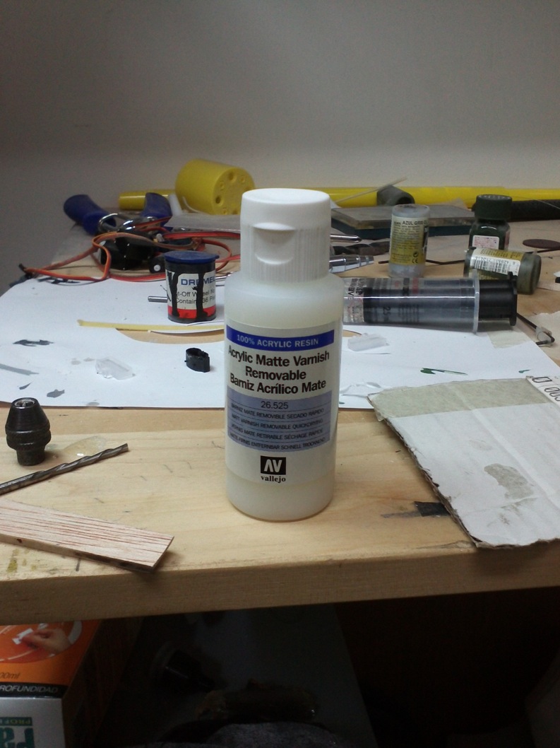 Este es el barniz que he utilizado para proteger las calcas hasta que llegue el momento de aplicar laca a todo.