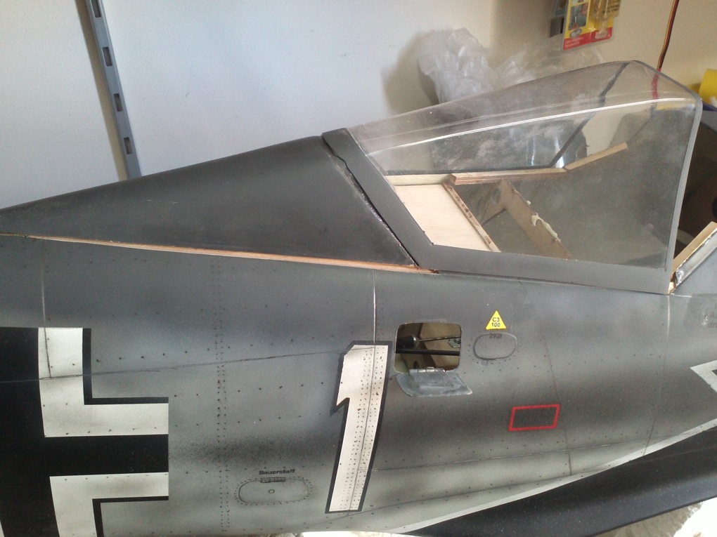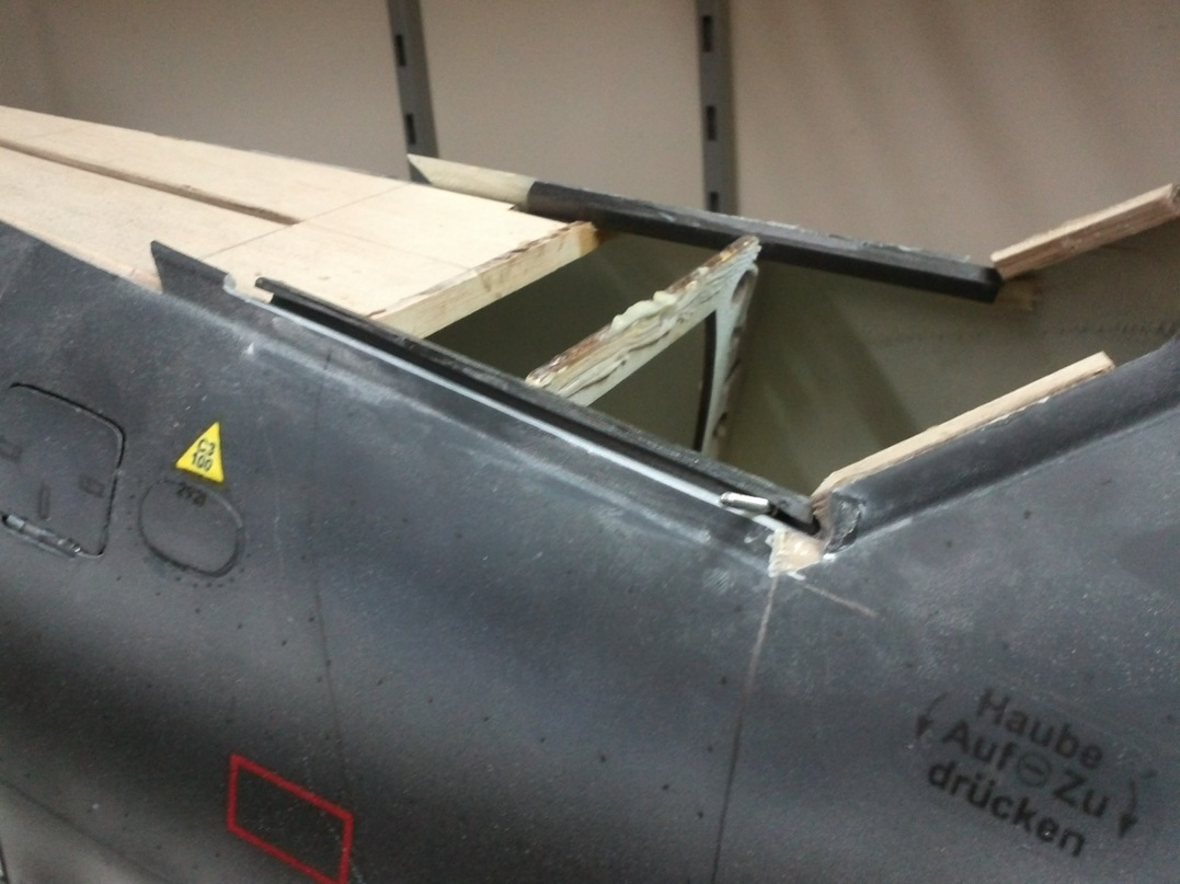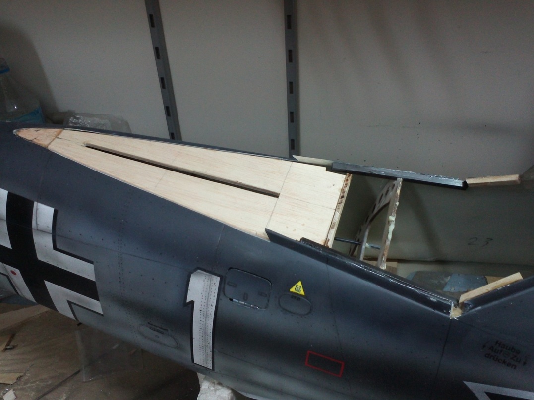 En el modelo real, la canopy de plexiglass, en la parte delantera arriba tiene una bisagra para que cuando el piloto la abriera, al hacer el recorrido hacia atras no tuviese problemas al ir deslizandose esta de mas a menos. En el caso del modelo que estoy montando, esta bisagra no la pondré debido a que la flexibilidad del plastico facilita que todo el conjunto se deslice suavemente y sin problema. Tambien le puse unos listoncitos en la parte delantera de la canopy y que quedaran enfrentados a otros que van en la parte móvil de la misma. Mas tarde le pondré el enclavado para que una vez cerrada asegure que no habra problemas en vuelo así como unas tiritas de espuma sobre los listoncitos que se supone ayudarán a hacer un cierre mas o menos hermético :) .