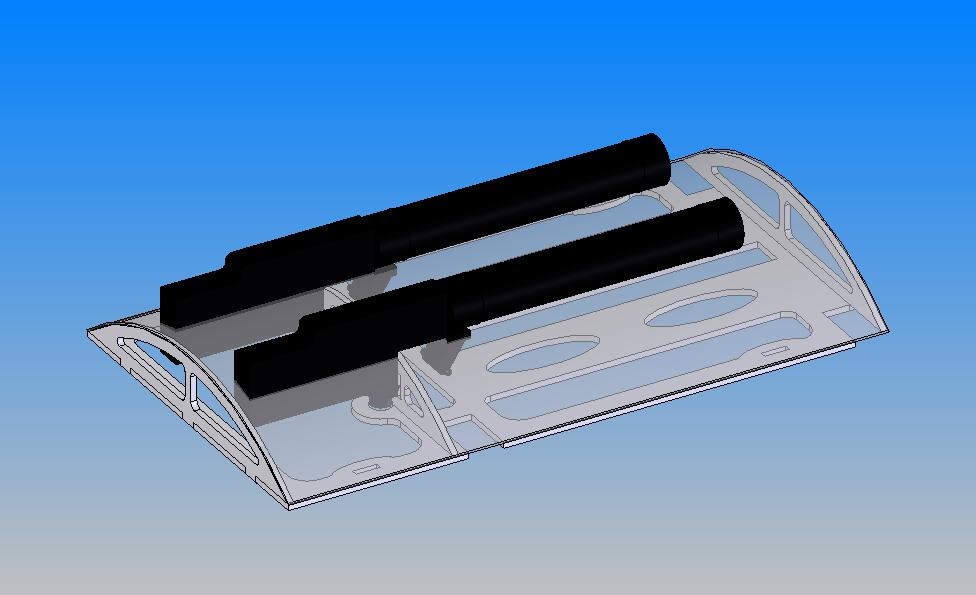 están previsto los alojamientos de deposito, metralletas, baterias, servos encendido, interruptores,pasos de los cables, los horn de mando van integrados en la estructura de las partes moviles, los largueros del las alas van premontados, todo, todo, todo,