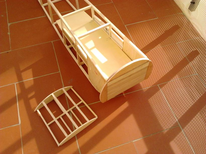 no se si ser el 'gafe' del post, pero ....... es que si no te lo comento .... luego me sentiria mal :roll: , en la foto que pones en la que se ve el montaje del ala, en la sujeccion de la palomilla, no veo ningun refuerzo que transmita la compresion del ala a traves del hueco del fuselaje, ten en cuenta que si pones tirantes de tension del ala, parte de esa tension tendera a comprimir estas contra el fuselaje y la estructura que veo por ahora no creo que soportaria mucho .... otra fuerza a tener en cuenta seria (espero que no :mrgreen: ) la que ocurriria al 'pararse en seco debido a un encuetro fortuito e inesperado' :mrgreen: :mrgreen: :mrgreen: pues la inercia de las piezas del ala haria que siguieran hacia adelante , comprimiendo el fuselaje.